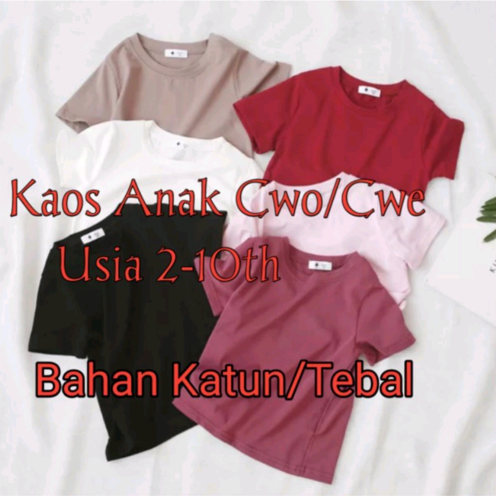 Kaos Polos Anak Usia 2-10th Kaos Anak Unisex Cowok/Cewek Kaos Oblong Anak Baju Anak Anak
