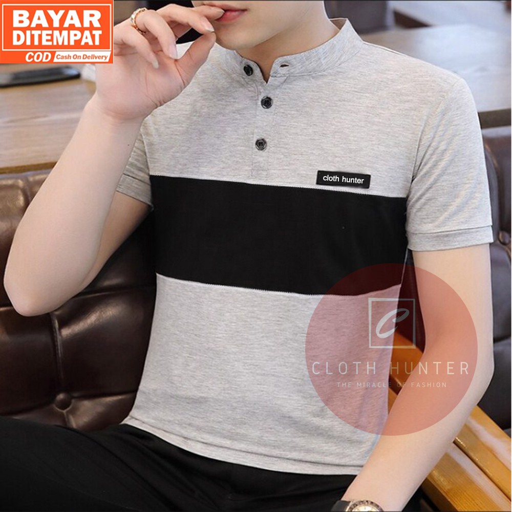 Kaos Pria Cloud Abu Misty Polos Kerah Polo Shirt Shanghai Mandarin Original Distro Bandung