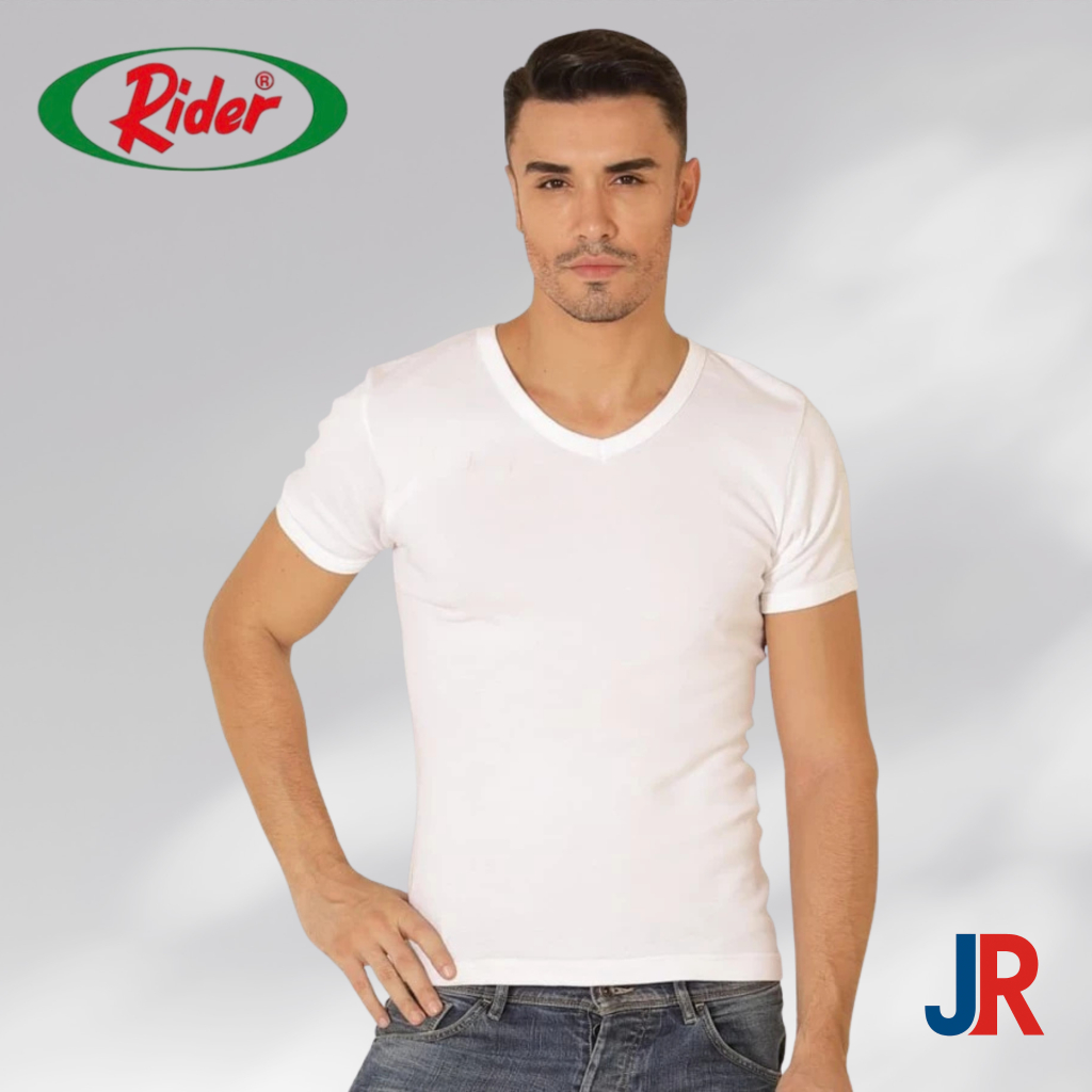 Kaos Putih Polos Rider Pria Kerah V Tipe R222V