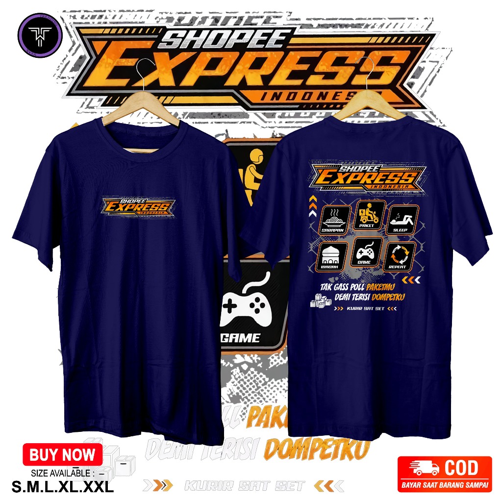 Kaos Shoppee Express Kurir Sat Set - Baju Kurir Paket Ekspedisi SPX Sopee Xpress - Kaos Distro Bahan Cotton Combat 30s