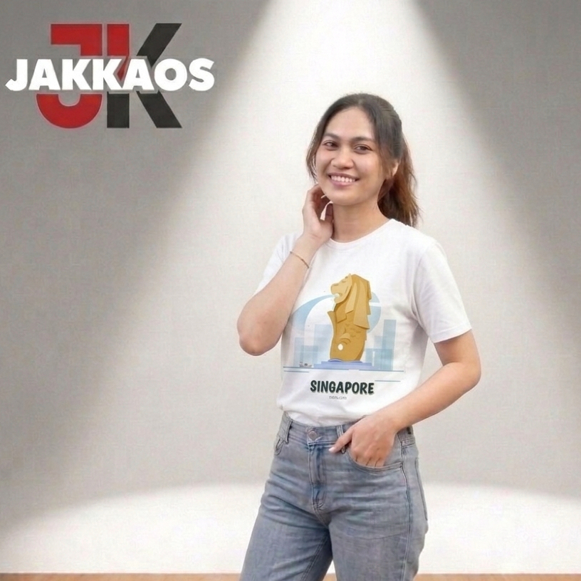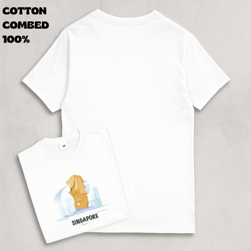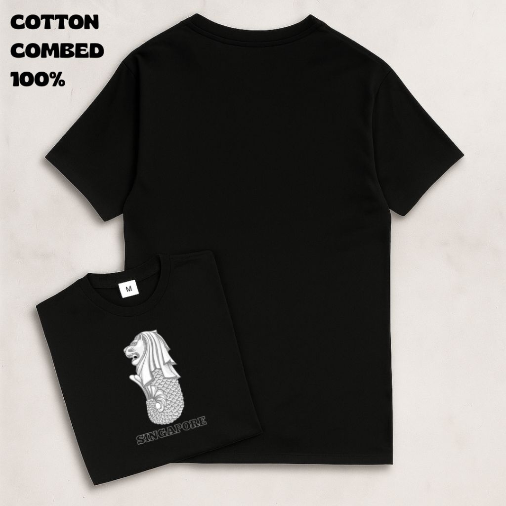 Kaos Singapore Merlion | Baju Souvenir Singapura Unisex Pria Wanita | Katun Combed 100%