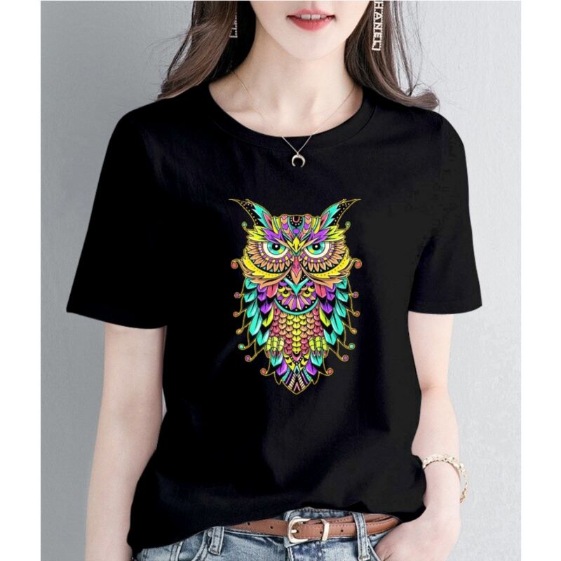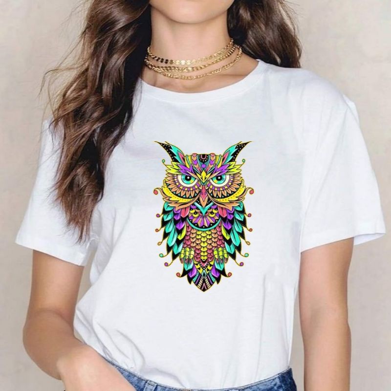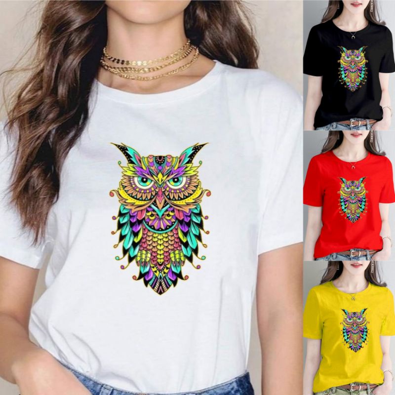 Kaos T-Shirt Wanita Owl Rainbow Baju Cewek kekinian Atasan Wanita Murah Baju Distro Cewek Kaos Oblong
