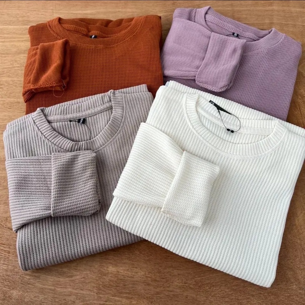 Kaos Waffle Wafer Lengan Panjang Wanita Premium Bahan Tebal Dan Adem