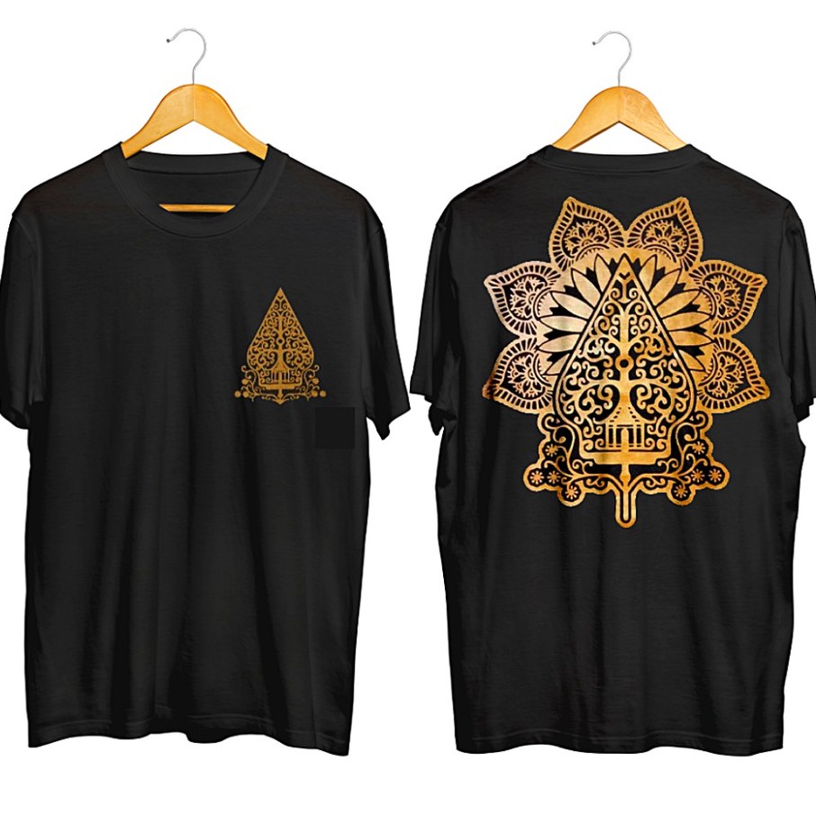 Kaos Wayang Jawa Ajining Diri Saka Lathi Lengan Pendek Hitam \ T-shirt Oblong Distro Atasan Pria I Wanita \ Katun Combed 30S