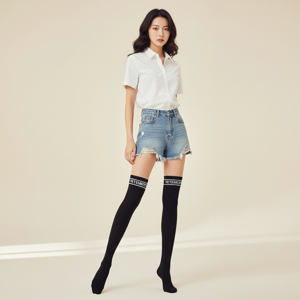 Kaos kaki Wanita panjang sepaha di atas Lutut Over Knee Socks Korea polos strip sock