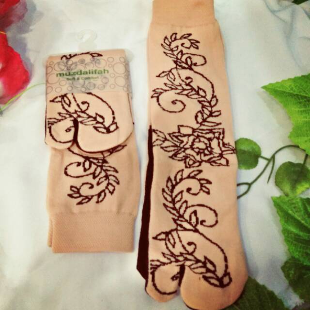 Kaos kaki jempol coklat motif batik henna tebal nyaman Musdalifah