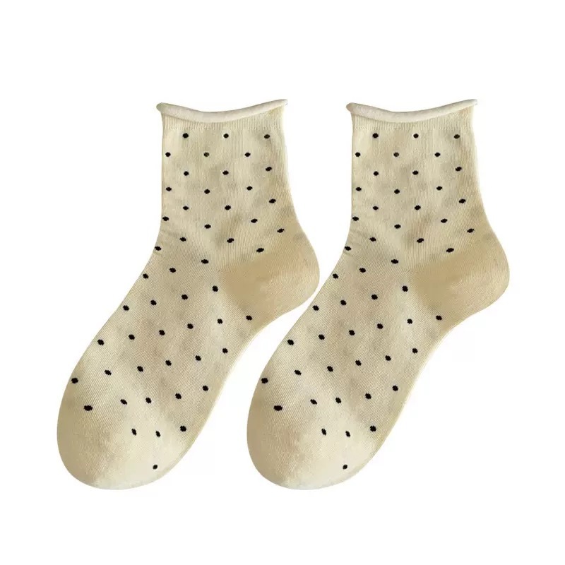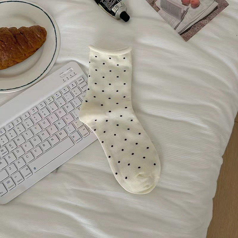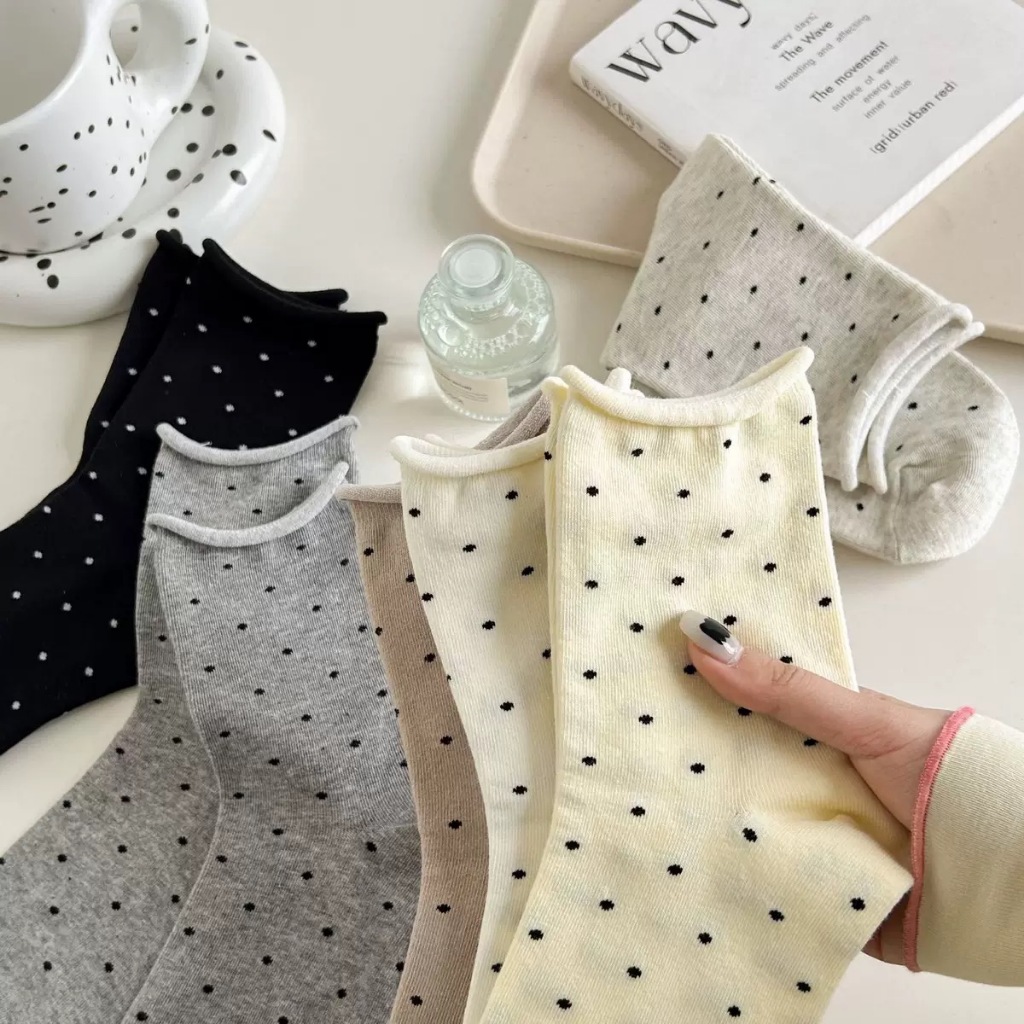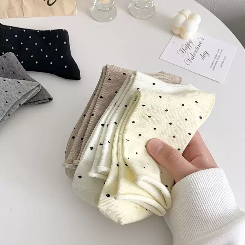 Kaos kaki panjang wanita polkadot mid tube / Kaos wanita panjang /kaos kaki curly /kaos kaki anak motif polkadot popular japanese style women socks KK Polkadot 215