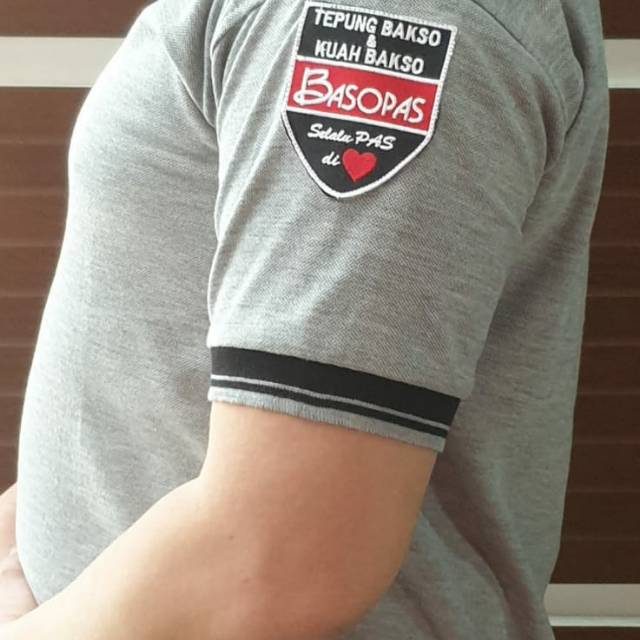 Kaos polo warna abu abu emblem basopas dan primarasa