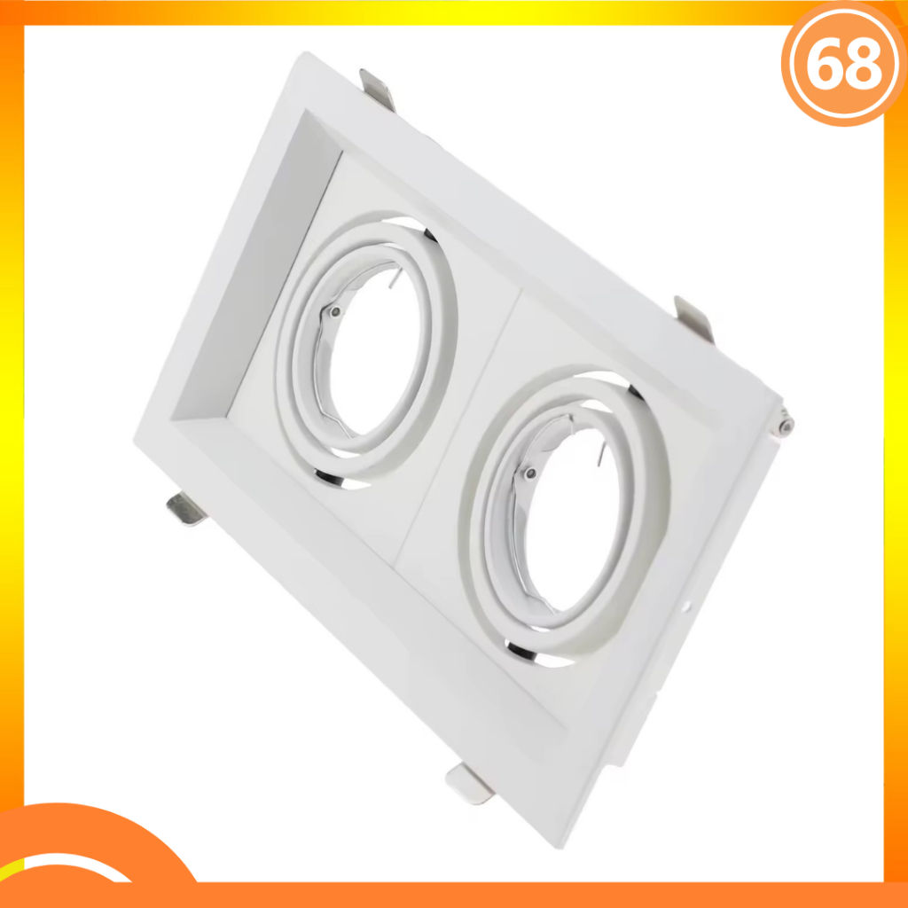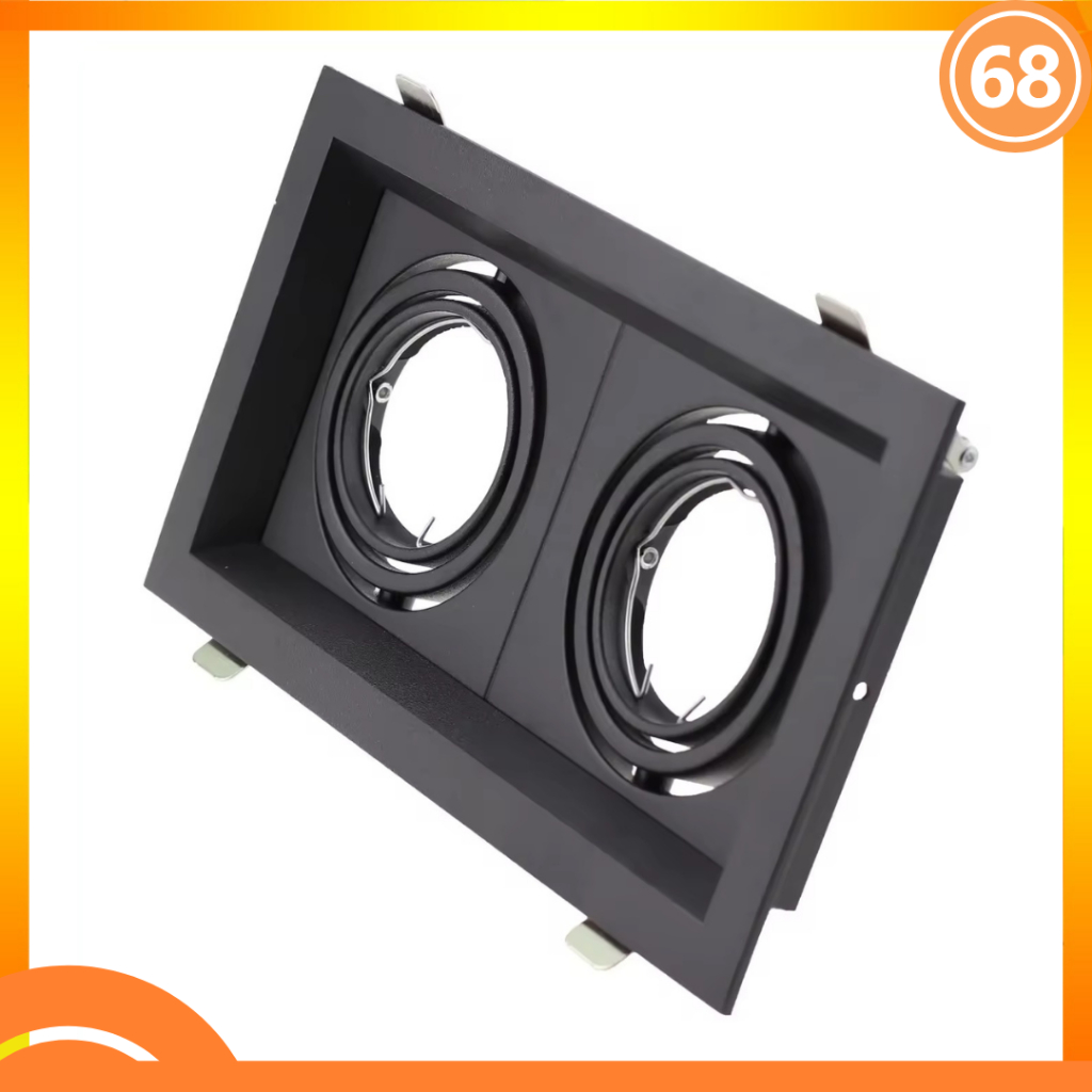 Kap Fitting Lampu Downlight Inbow MR16 Double / Housing MR16 Isi 2 / Downlight MR16 Halospot Adjustable 2 Gang Hitam Putih