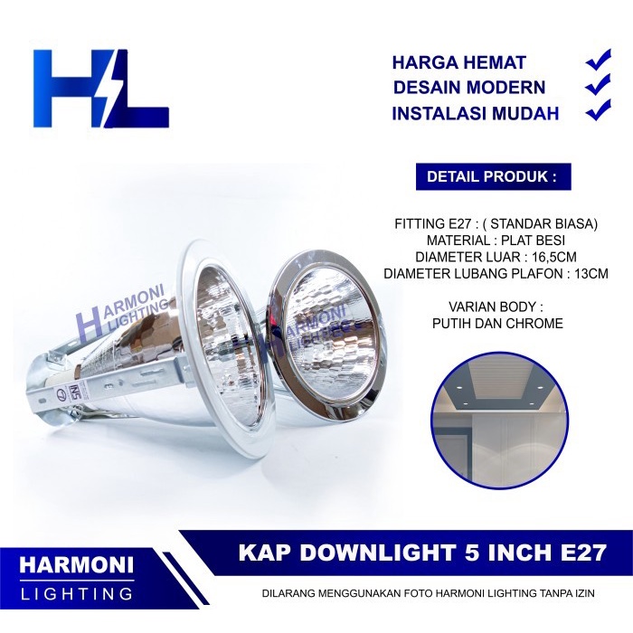 Kap Lampu Downlight 3.5 4 5 Inch Fitting Bohlam E27 Ulir Standar Inbow Plafon