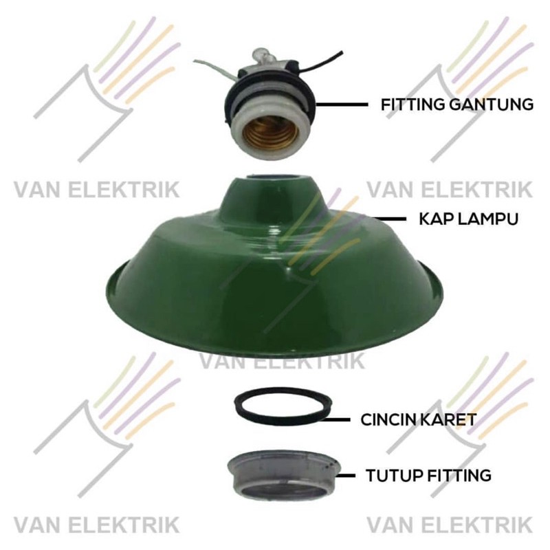 Kap Lampu Satu Set Jalan WD Hijau Gantung E27 / Lampu Tiang/ Kap Jalan