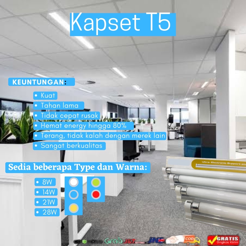 Kap + Lampu T5 1 Set / Kap Lampu Led 1 Set / Kapset Lampu TL / Lampu + Kap Lampu 1 Set Tinggal Pasang