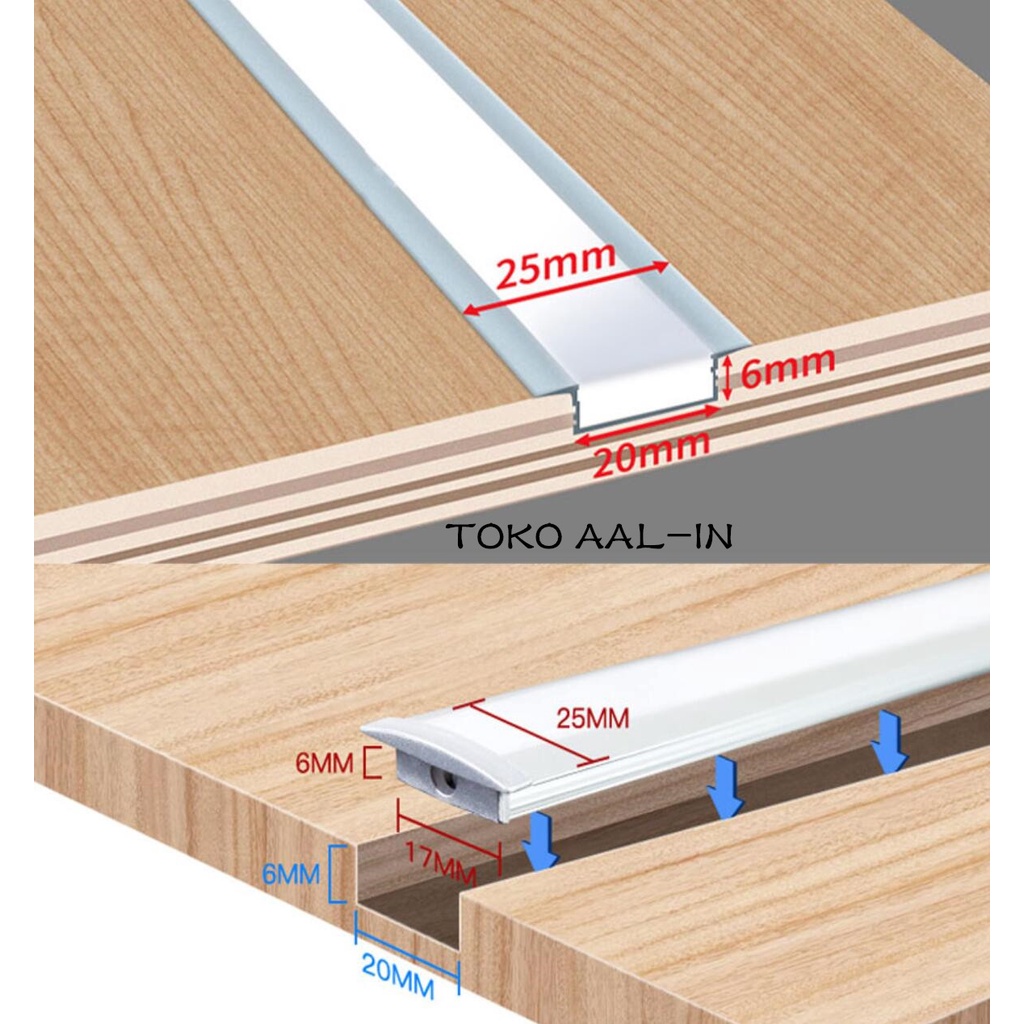 Kap lampu batangan alumunium panjang bentuk U rumah lampu strip led - Cover SUSU, 1 METER