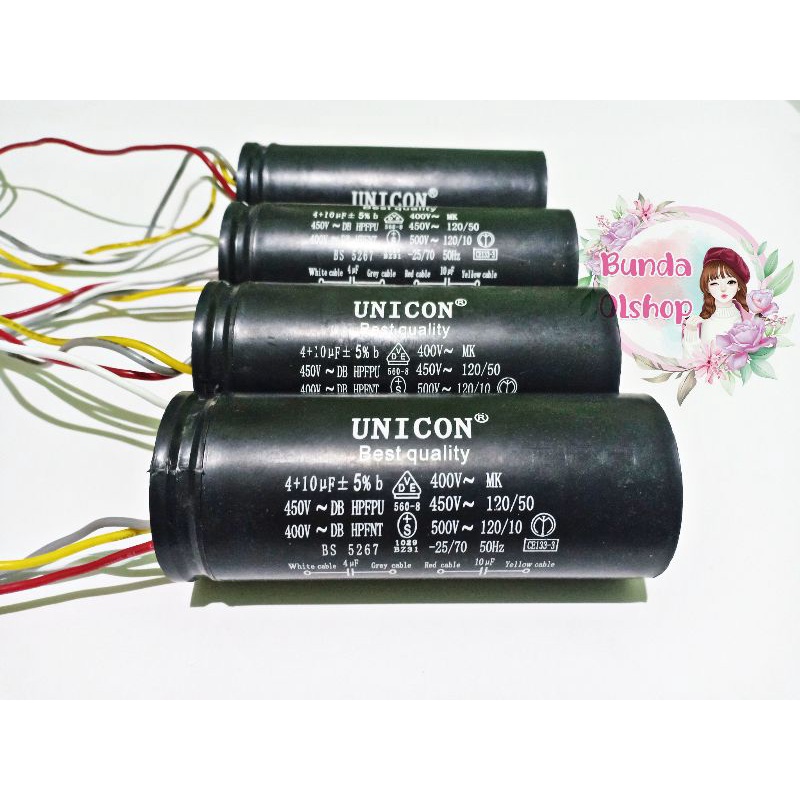 Kapasitor Mesin Cuci 2 Tabung 4+10UF / Capasitor Double Mesin Cuci 4+10UF