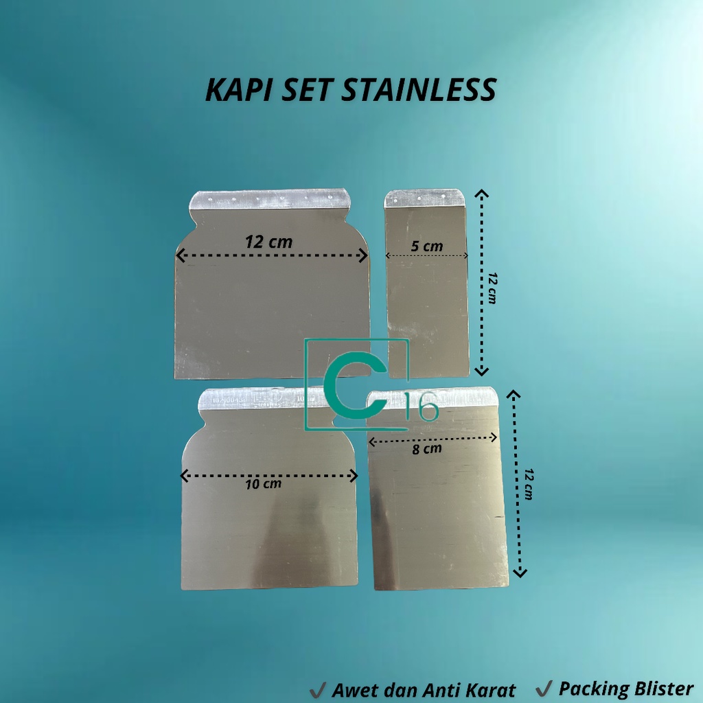 Kapi Cat Set | Pisau Dempul Set | Slipper Dempul Set 4pcs Stainless (JUAL PERSET) Termurah Berkualitas