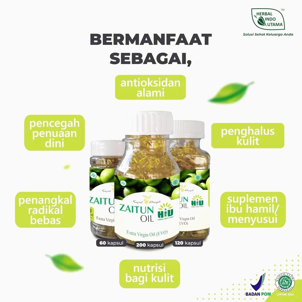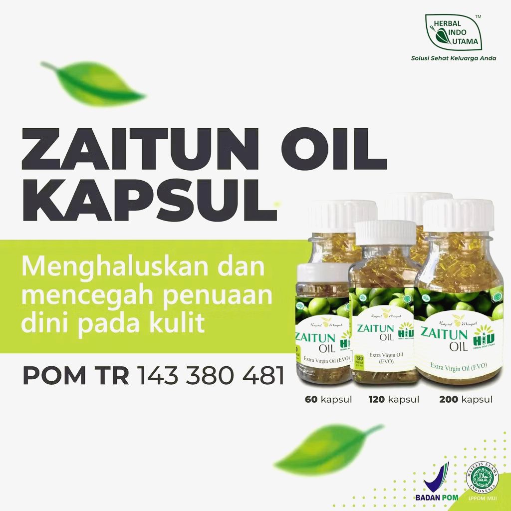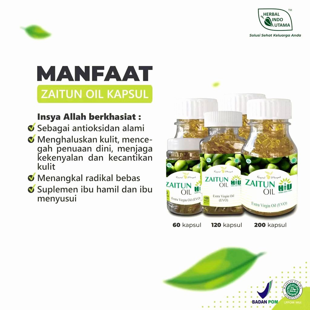 Kapsul Minyak Zaitun Extra Virgin HIU isi 200 kapsul - 120 kapsul & 60 kapsul