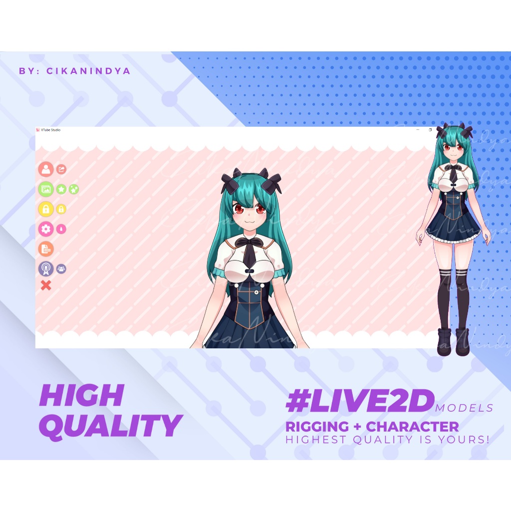Karakter Vtuber Siap Pakai Untuk Jadikan Streaming Lebih Menarik, Komisi Vtuber, Desain Karakter Vtuber, Streamer Anime Vtuber - Karakter Anime Skull Navy Green