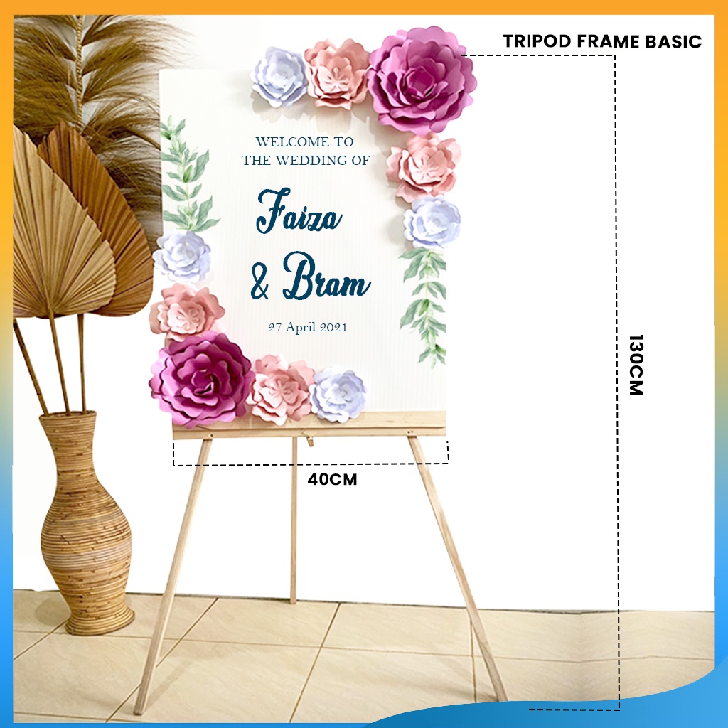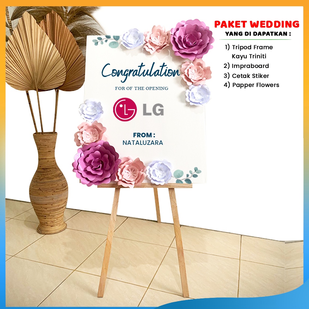 Karangan Papan Bunga Kertas 60x80 cm Tema 3 Dusty Pink Plus Standing Kayu / Besi - Karangan Bunga Papan Dekorasi Ucapan Selamat, Ulangtahun, Wisuda, Grand Opening, Wedding, Engagement, Papan Bunga Pernikahan Custom