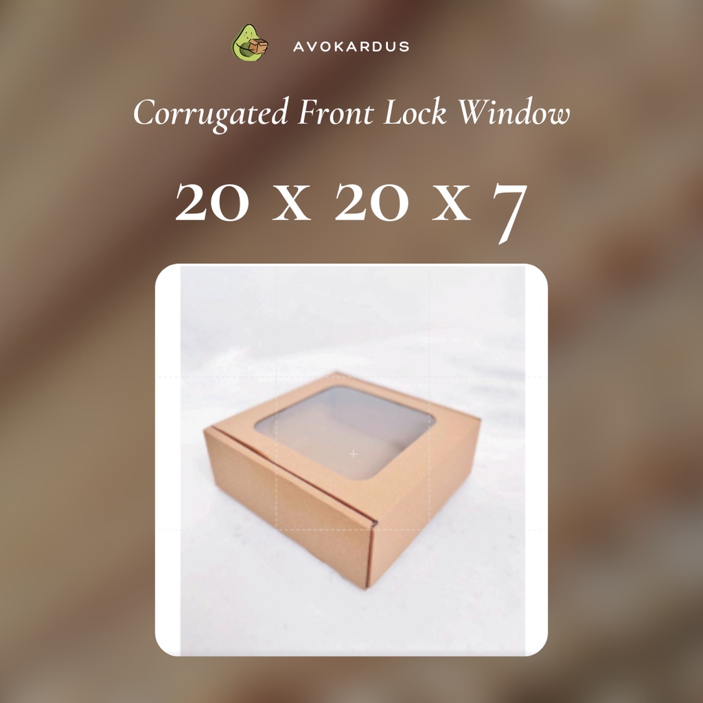 Kardus Corrugated Window 20x20x7 Front Lock Kotak Dus Pizza Die Cut Mika