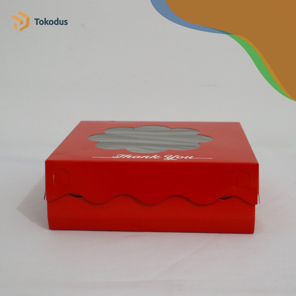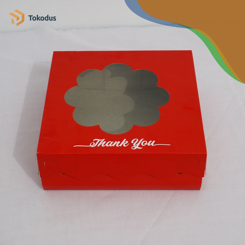 Kardus Kue/Box Bolu/Dus Kue Bolu 22x22x7 cm Duplex Merah Laminasi Dalam - Tokodus Bandung