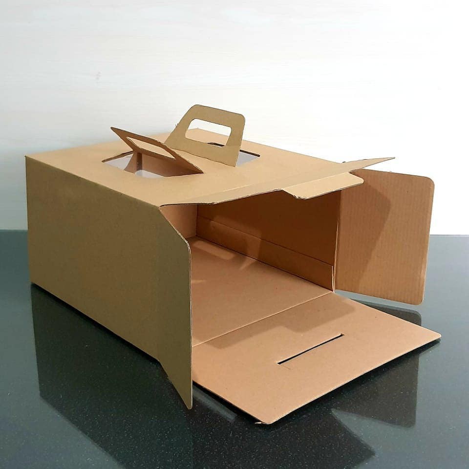 Kardus Kue Cake Besar Karton Polos / Box Polos Corrugated Handle (Uk. 25 x 25 x 15 cm)