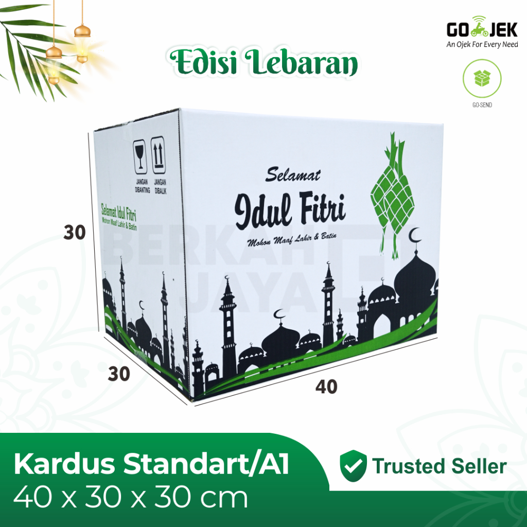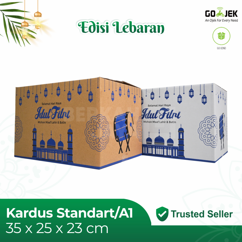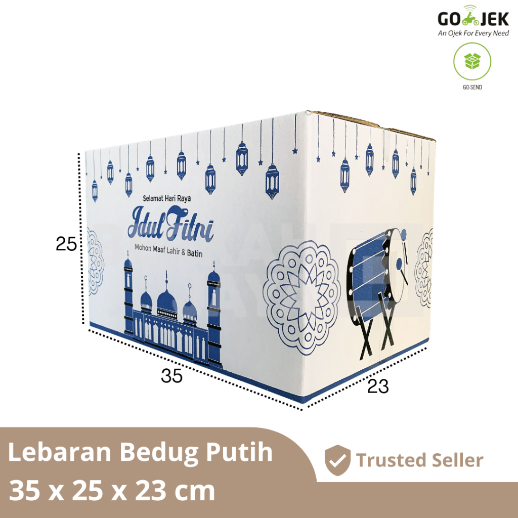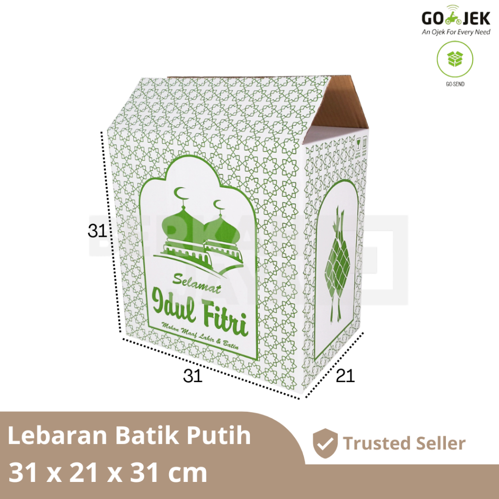 KARDUS PARSEL LEBARAN 35X25X23 / BOX PARCEL / PAKET SEMBAKO / DUS IDUL FITRI / HAMPERS - EID MUBARAK - PAKET SEMBAKO BERAS 5 KG - 35 X 25 X 23 PUTIH COKLAT