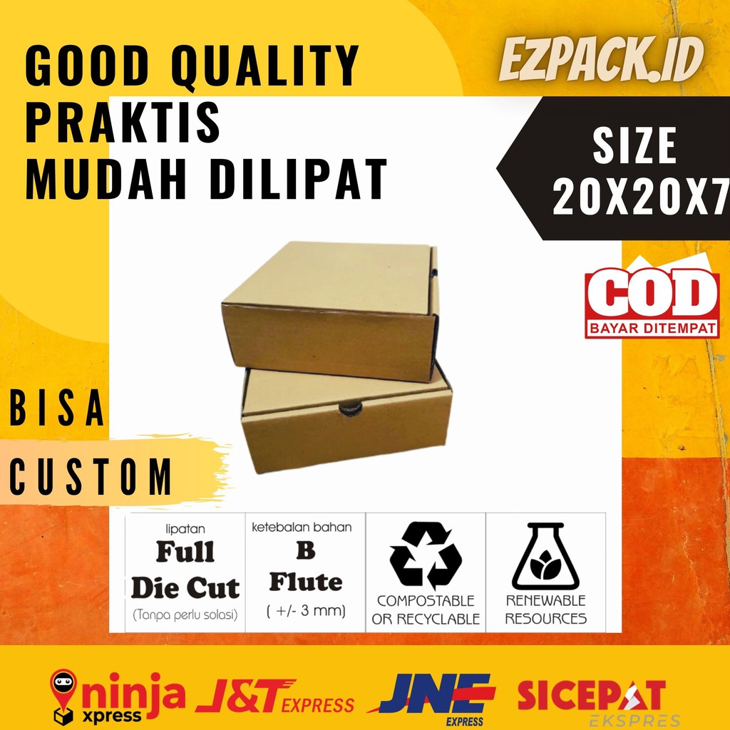 Kardus packaging box die cut 20x20x7 kotak packing box hampers, hijab, baju, makanan (bisa custom)