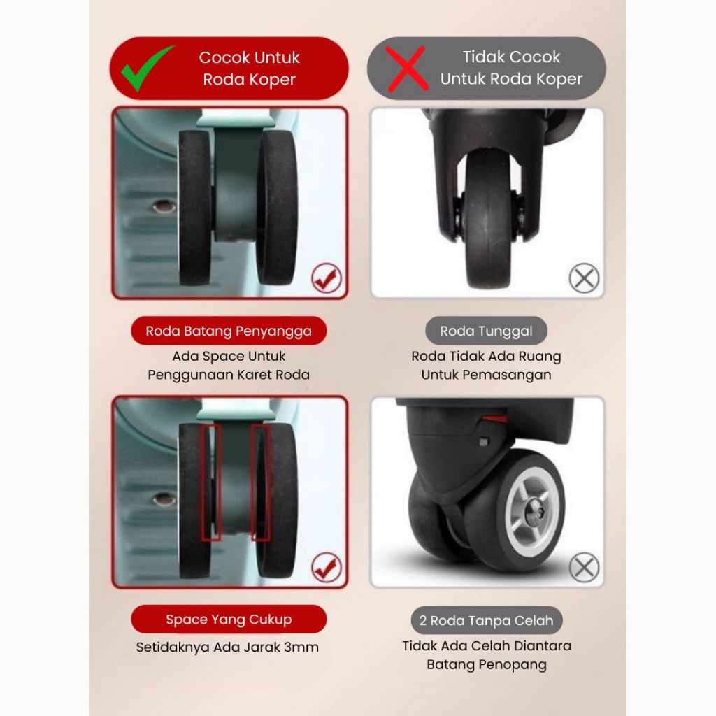 Karet Silicon Pelindung Protector Roda Koper Universal Melindungi Wheel Cover Anti Slip Bergerigi Roda Koper Jadi Smooth