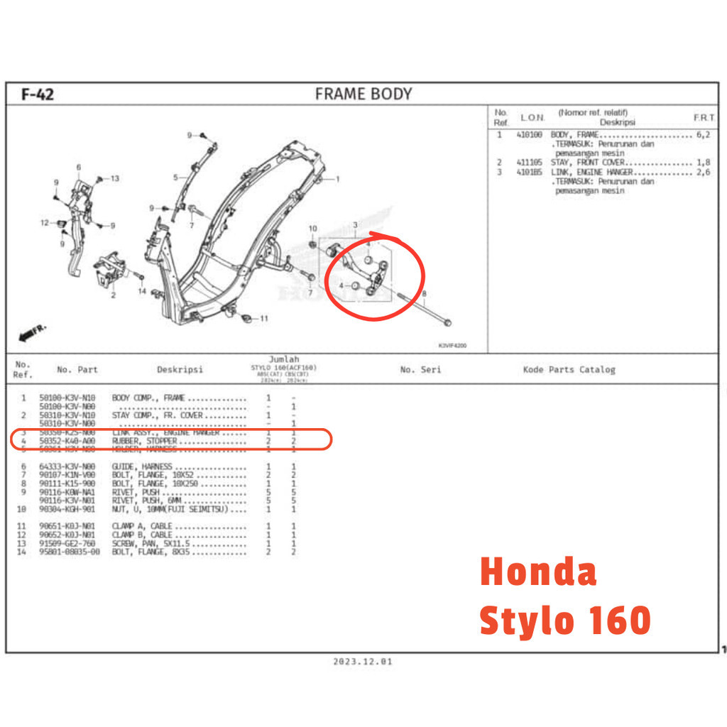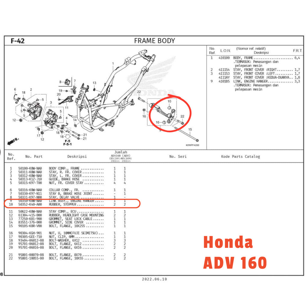 Karet Stopper Engine Mounting Honda Vario 160 ADV 160 PCX 160 Stylo 160 (Rubber Peredam Tahanan Link Hanger Losspack - Bromo Motor)