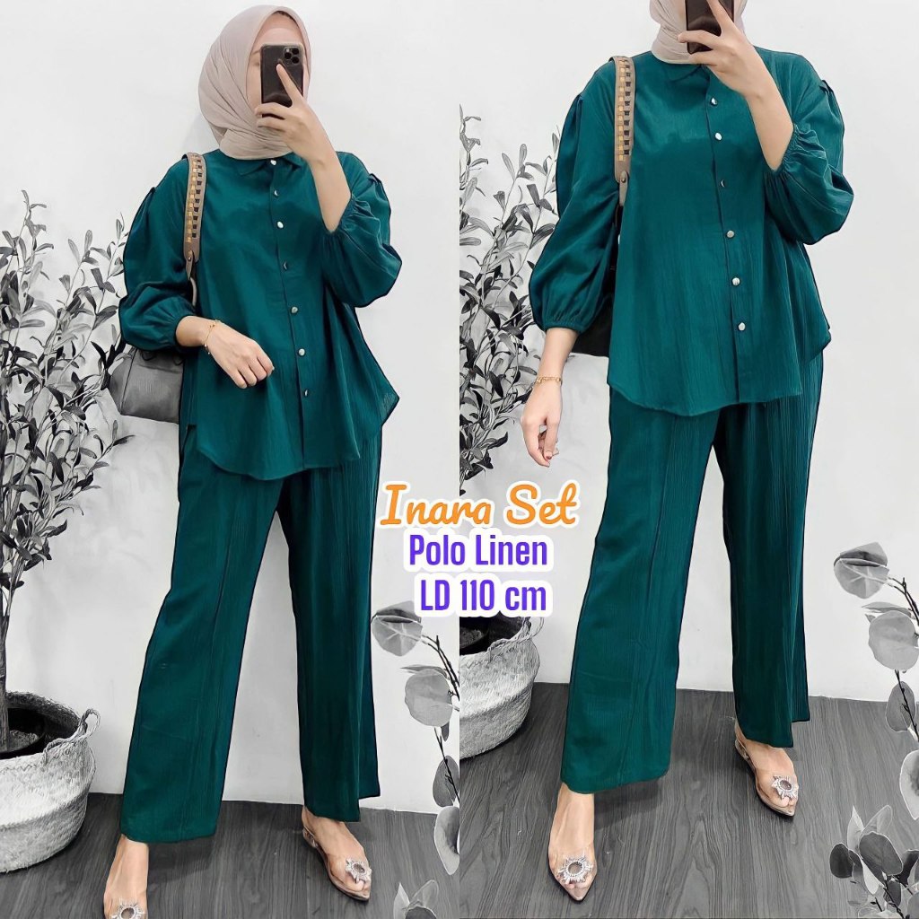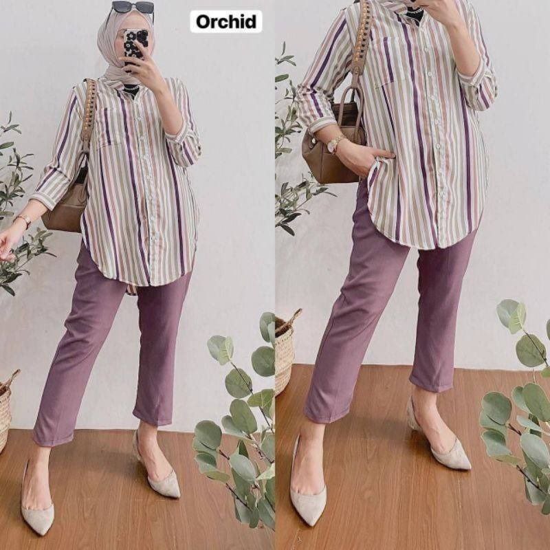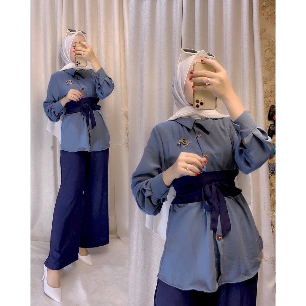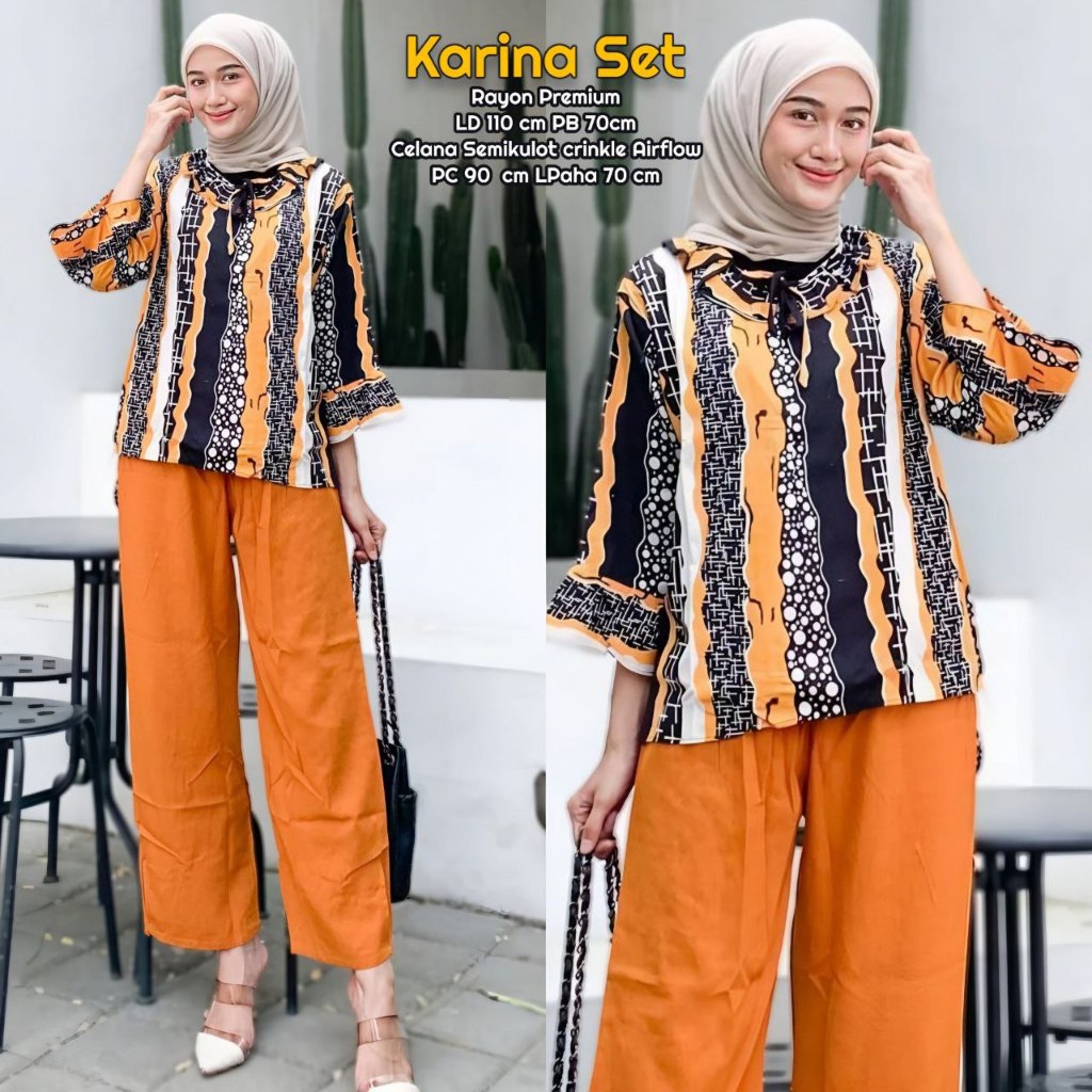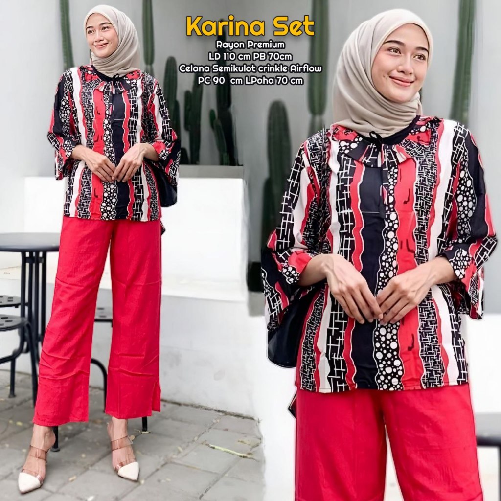 Karina Set One Set Wanita Kekinian Rayon Premium Kemeja Baju Setelan Wanita Celana Kulot LD 110 cm