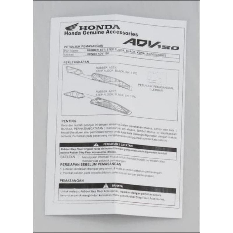 Karpet Bordes Panel Step Floor Foot Step pijakan kaki ADV 150 Original Honda