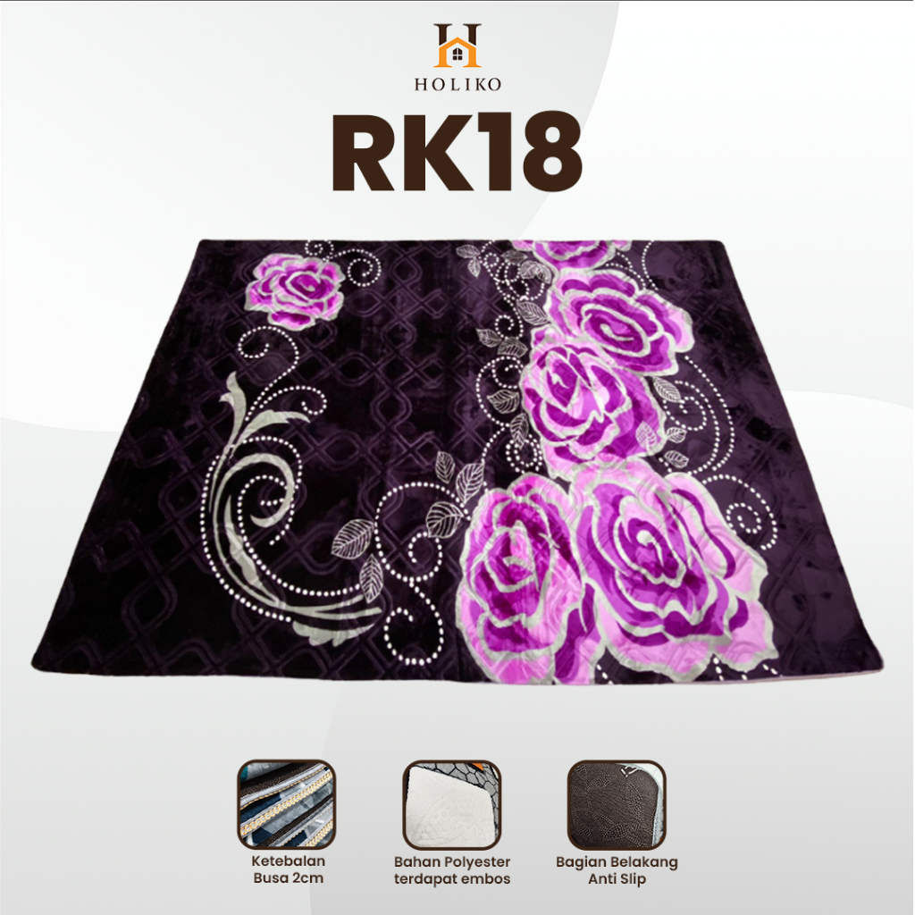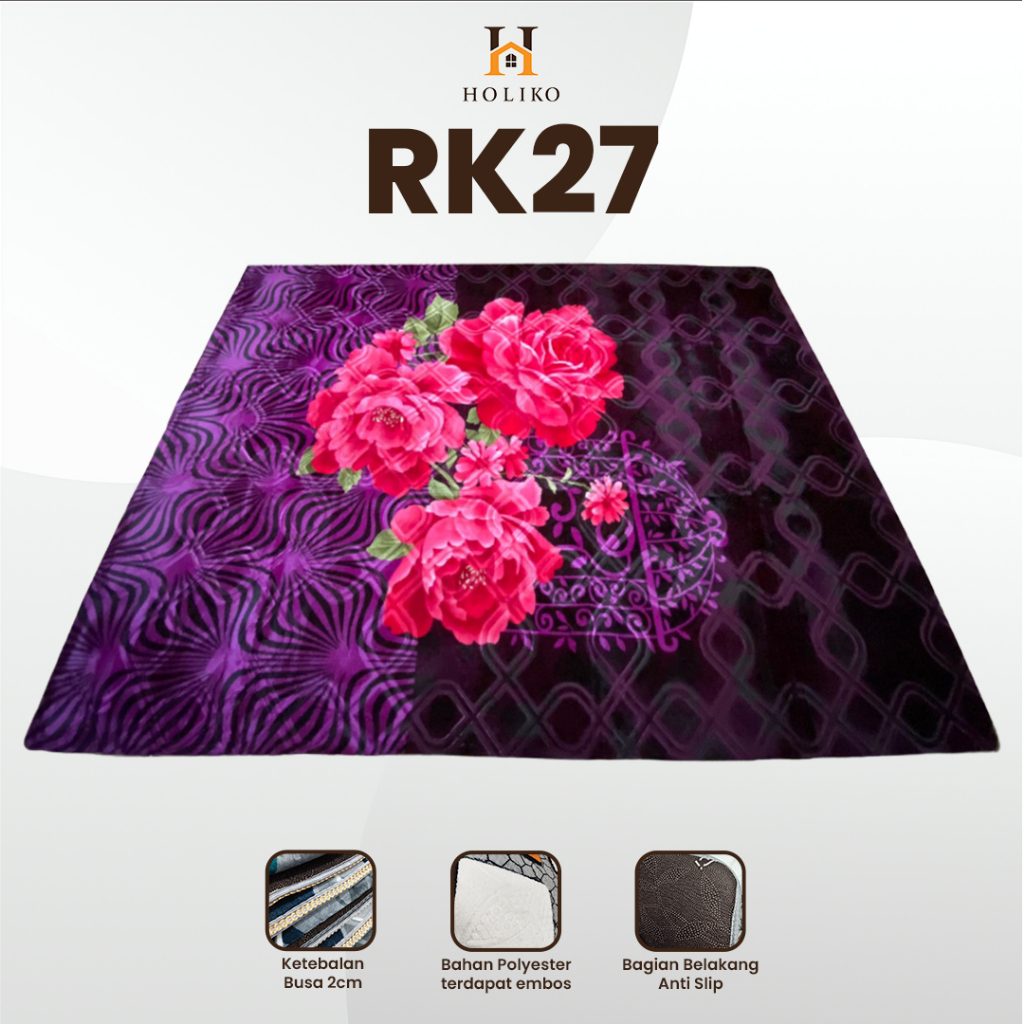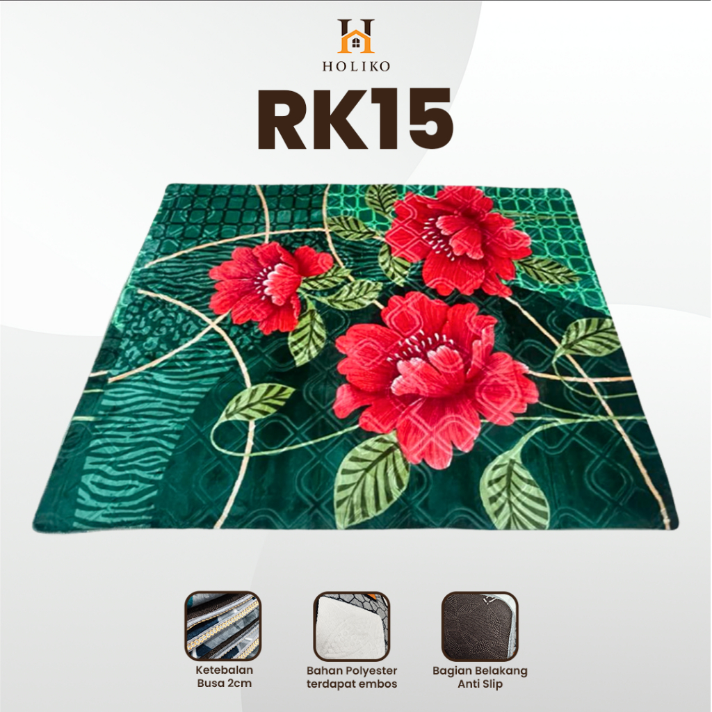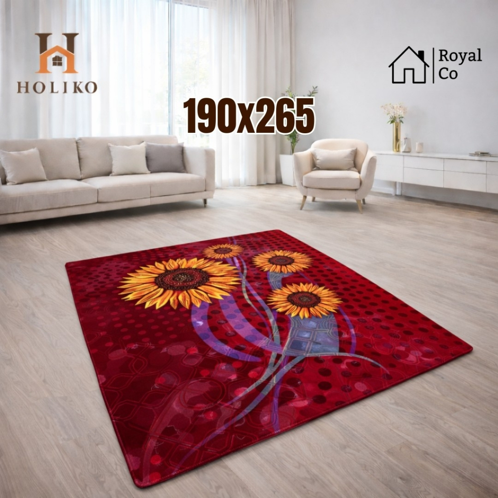 [HOLIKO] Karpet Busa Malaysia 190X265 Motif Bunga Ambal Lembut Polyester Silk