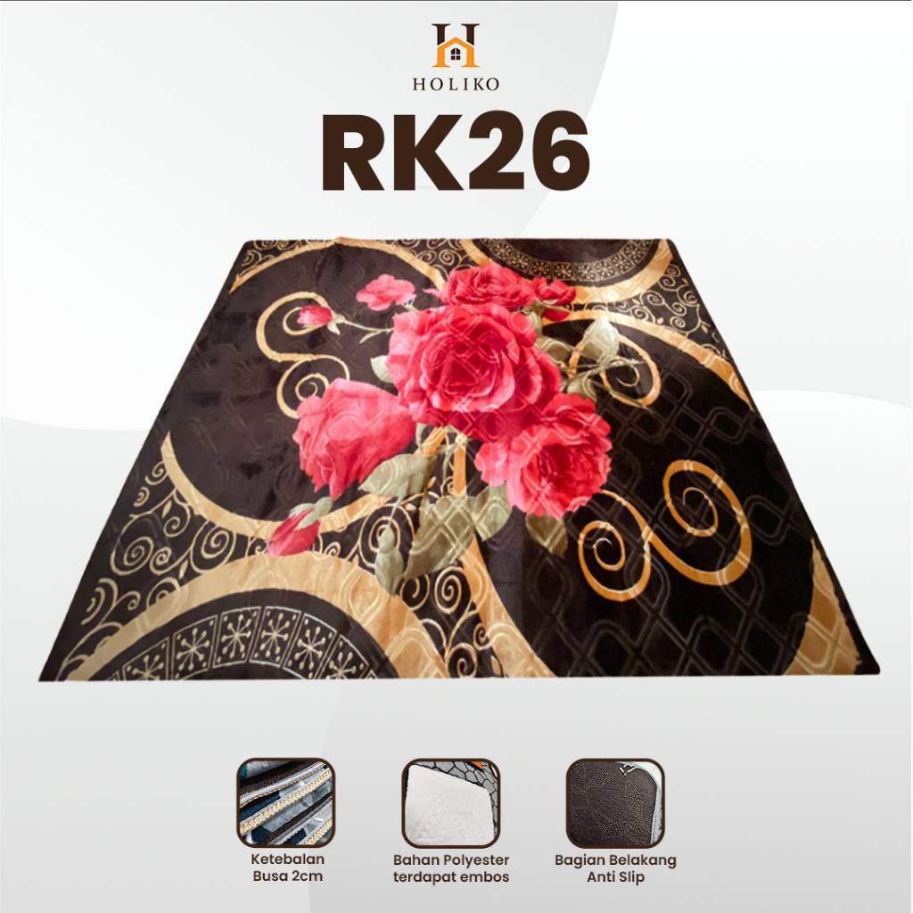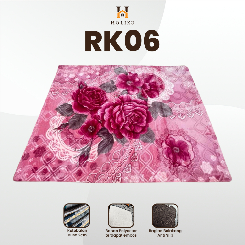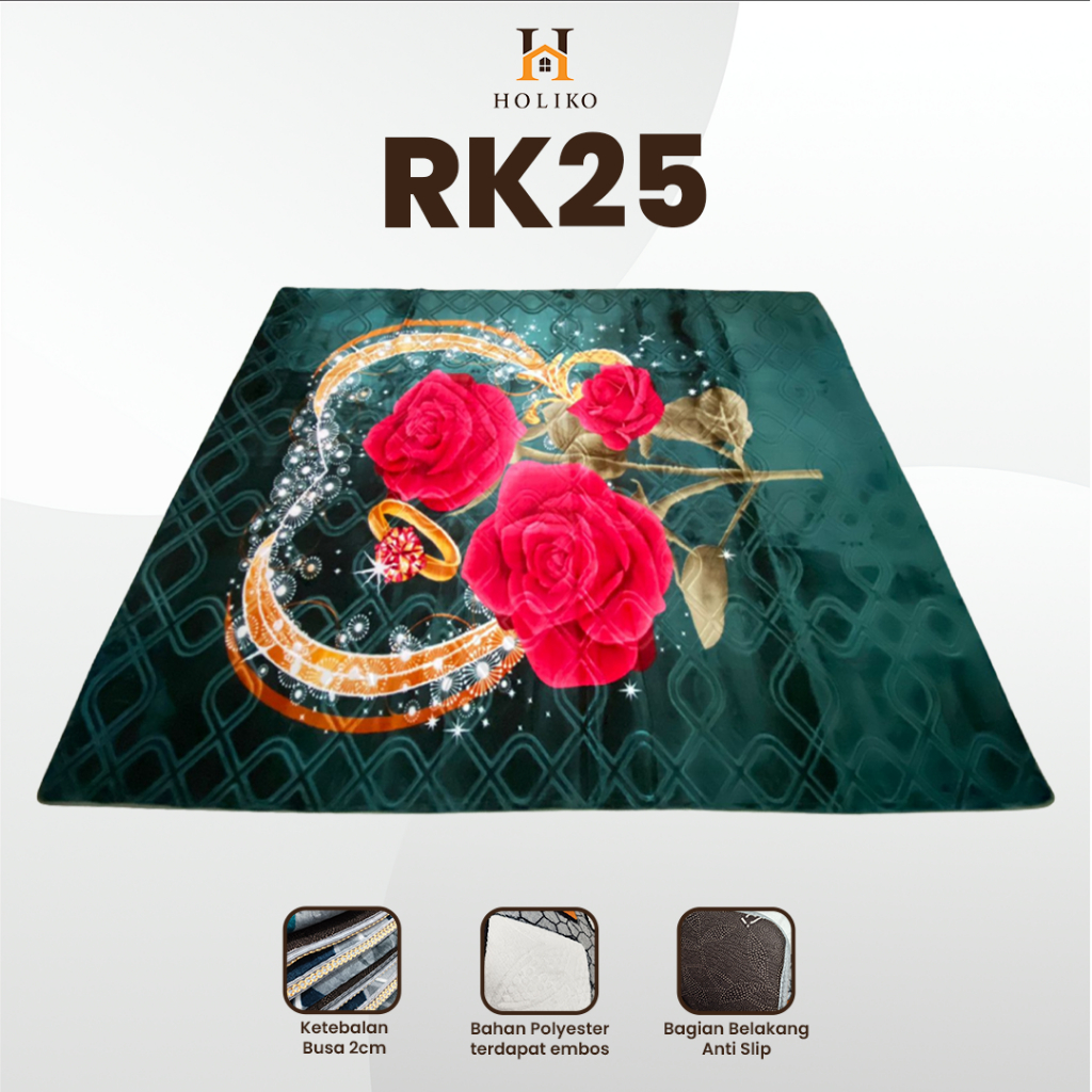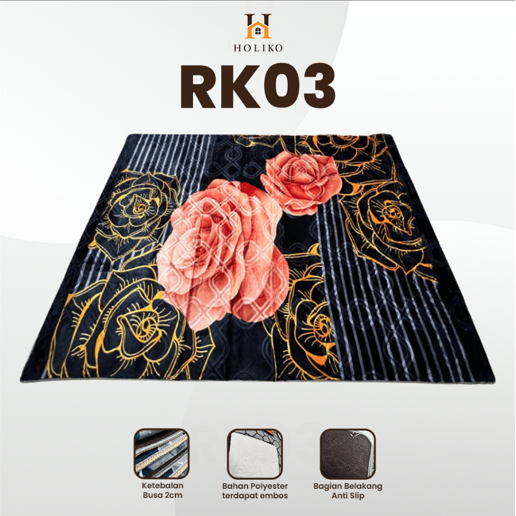 [HOLIKO] Karpet Busa Malaysia 190X265 Motif Bunga Ambal Lembut Polyester Silk