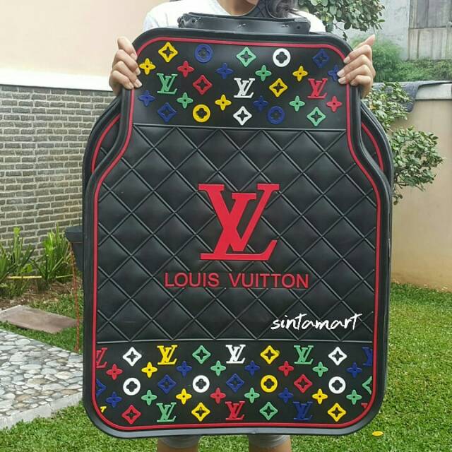 Karpet Mobil Louis Vuitton LV Hitam logo Merah