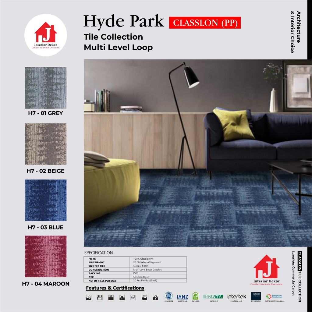 JDEKOR - Karpet Tile HYDE PARK Collection | Karpet Kantor 50 X 50 cm | Isi 5 Meter Per Segi/BOX | Isi 20 Lembar