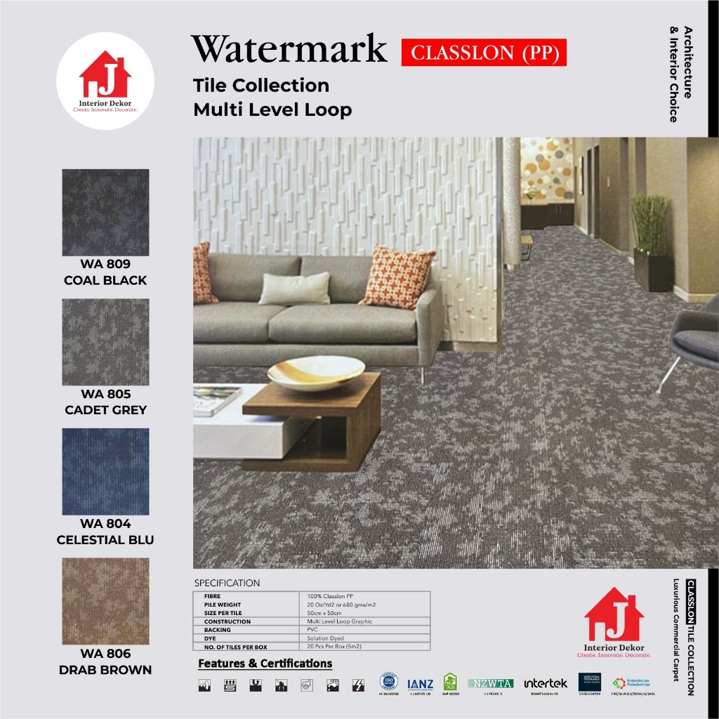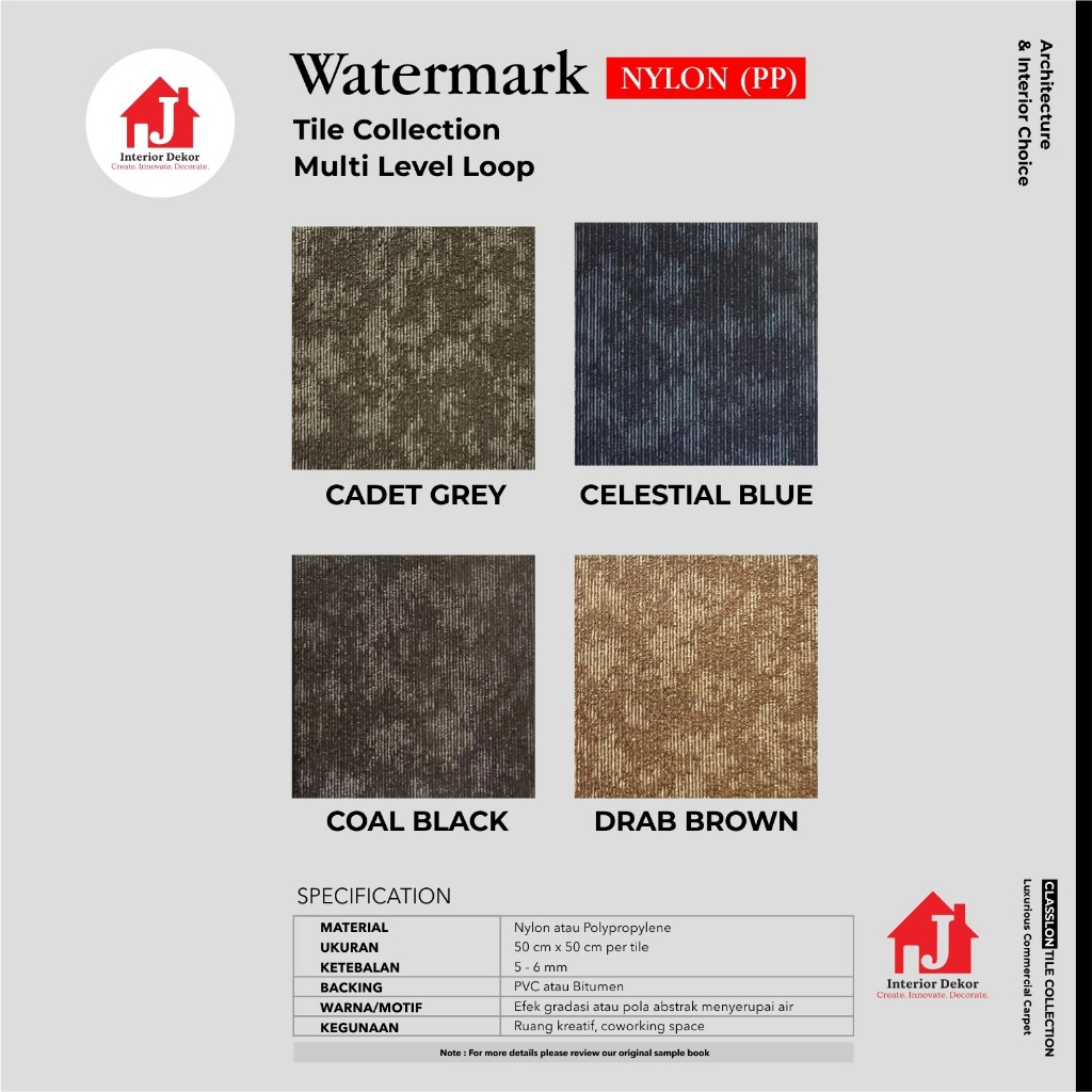 JDEKOR - Karpet Tile Watermark Motif Tebal 8 Mm Isi 20 Pcs Jdekor