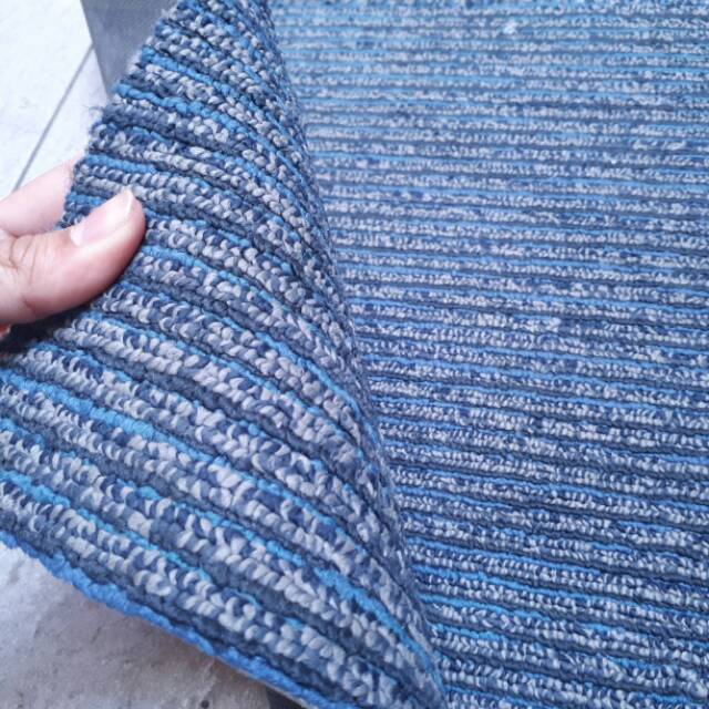 Karpet tile blue garis