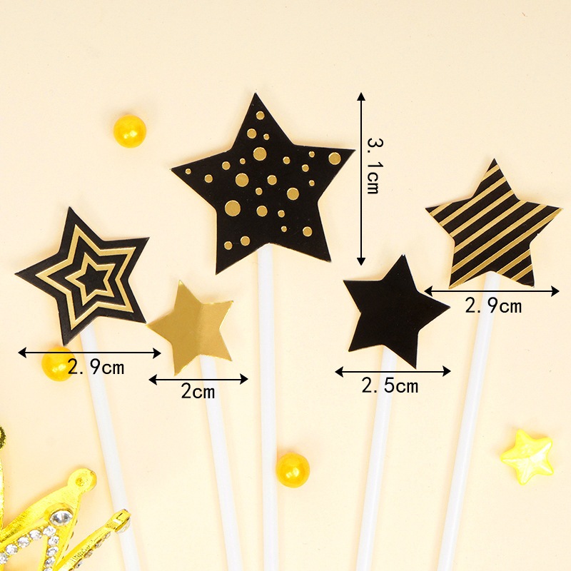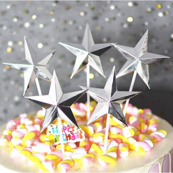 Karton Kertas Topper hiasan cake kue ulang tahun birthday ultah bintang star gold emas silver perak