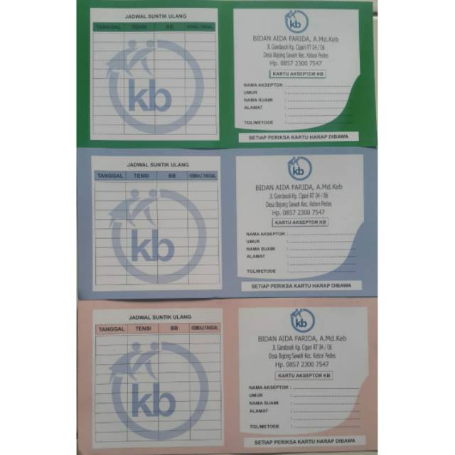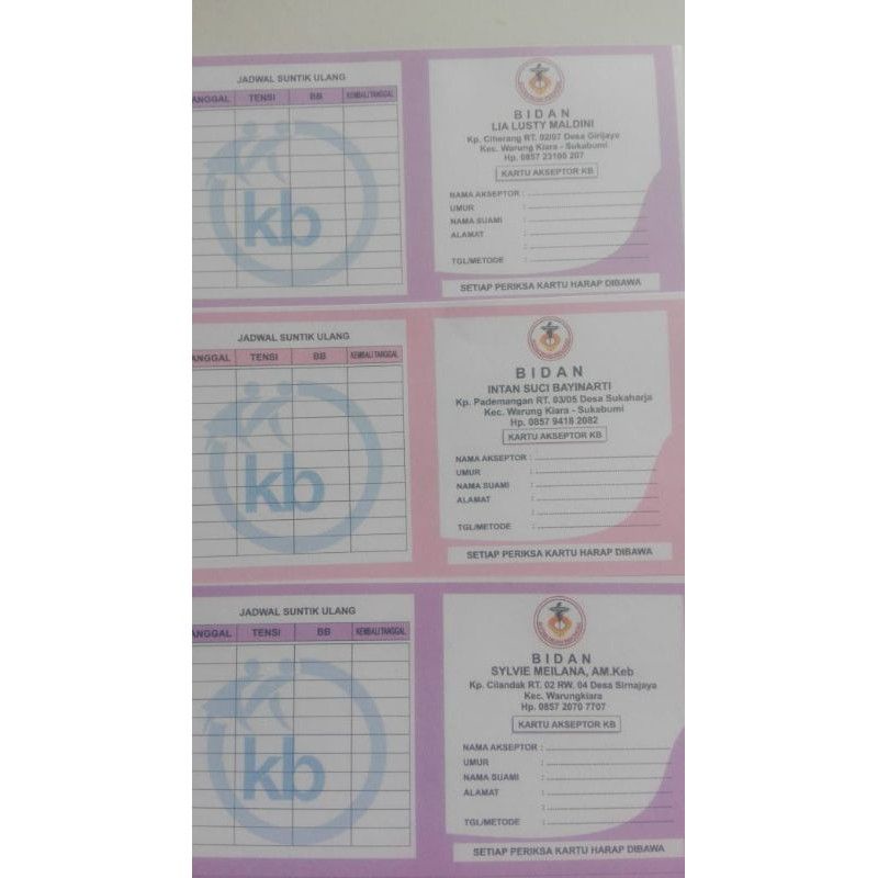 Kartu Kontrol KB Jadwal Suntik KB Bulanan