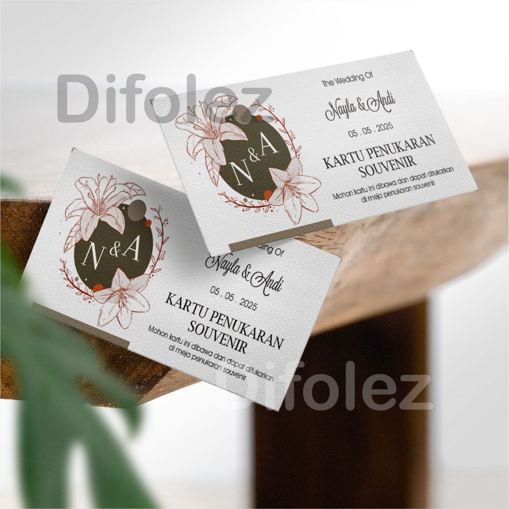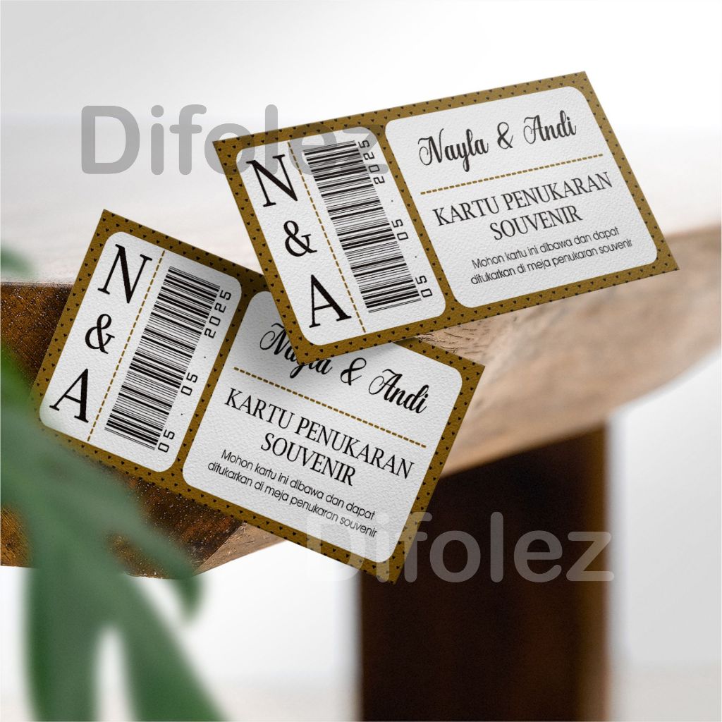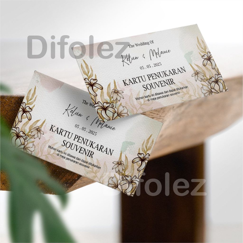 Kartu Penukaran Souvenir Custom | Kupon Souvenir pernikahan | Kartu Pengambilan Souvenir 010C