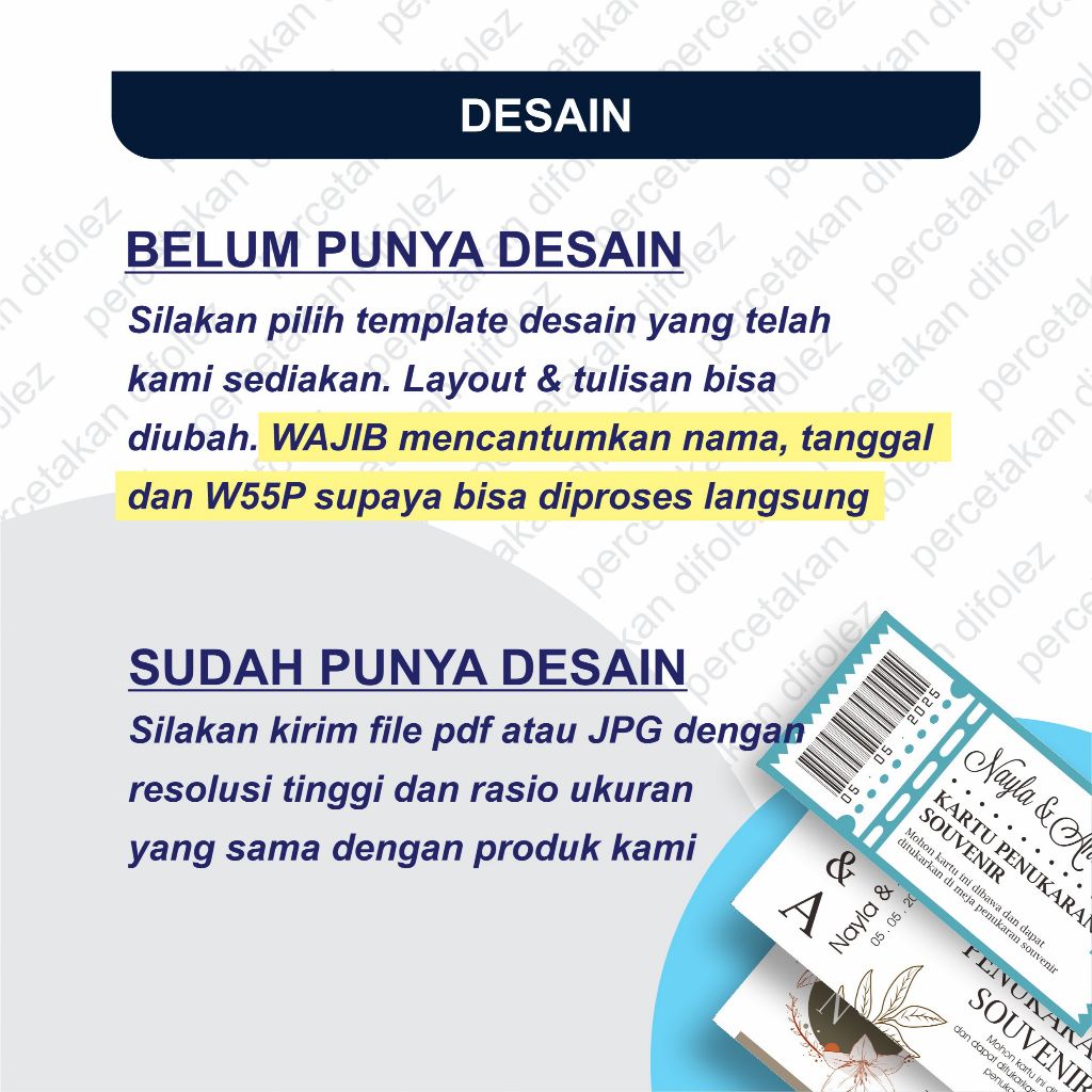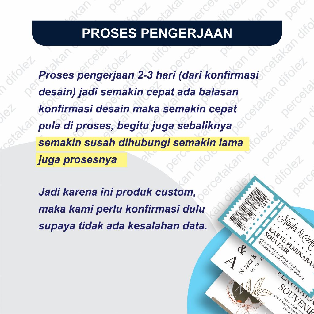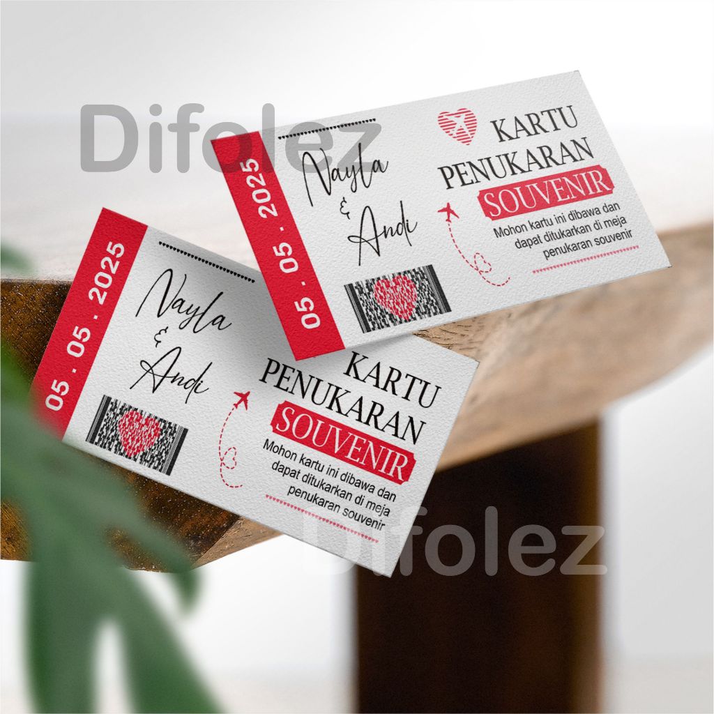 Kartu Penukaran Souvenir Custom | Kupon Souvenir pernikahan | Kartu Pengambilan Souvenir 010C