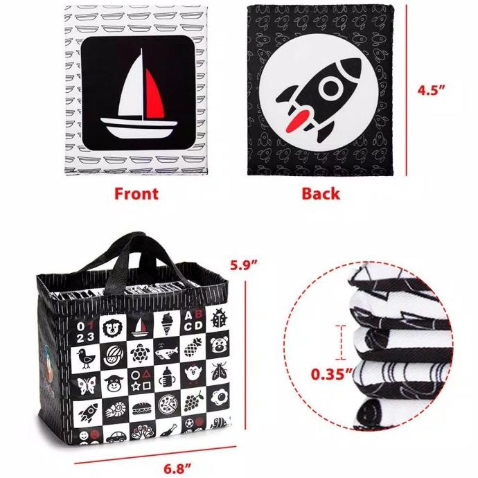 Kartu Pintar Buku Kain Flashcard Hitam Putih Soft Book Flash Card Bayi