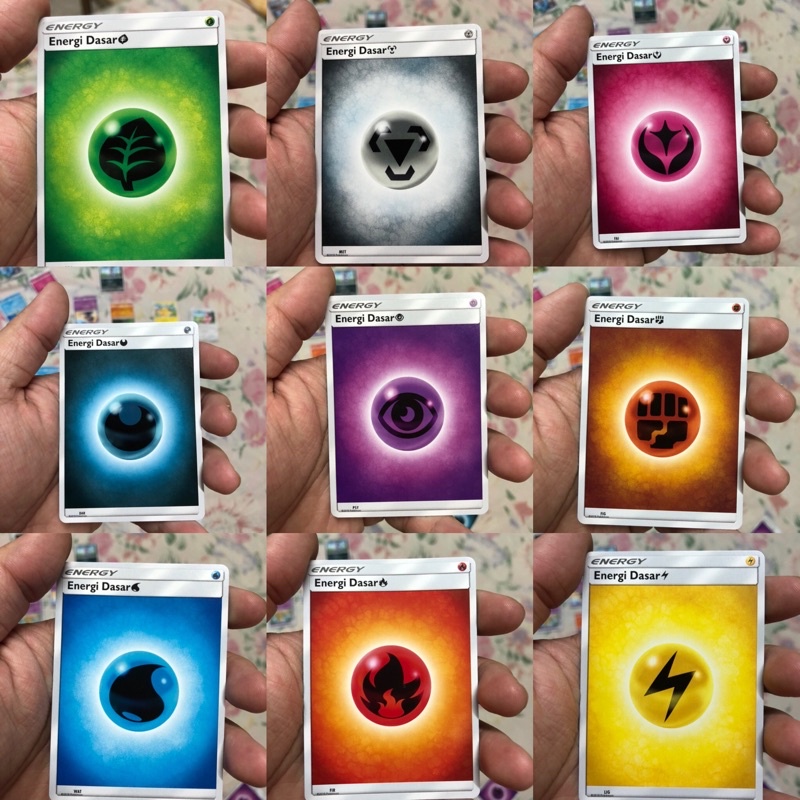 Kartu Pokemon TCG Energi Dasar Sun & Moon 9 Element Original Satuan Energy Api Air Daun Dark Batu Metal Fairy Listrik Psychic