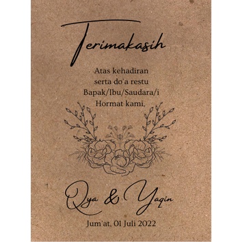 Kartu Souvenir Pernikahan Isi 100 Pcs/ Kartu Souvenir / Kartu Ucapan Terimakasih / Thankyou card / Kartu Souvenir Craft Paper kertas kraft