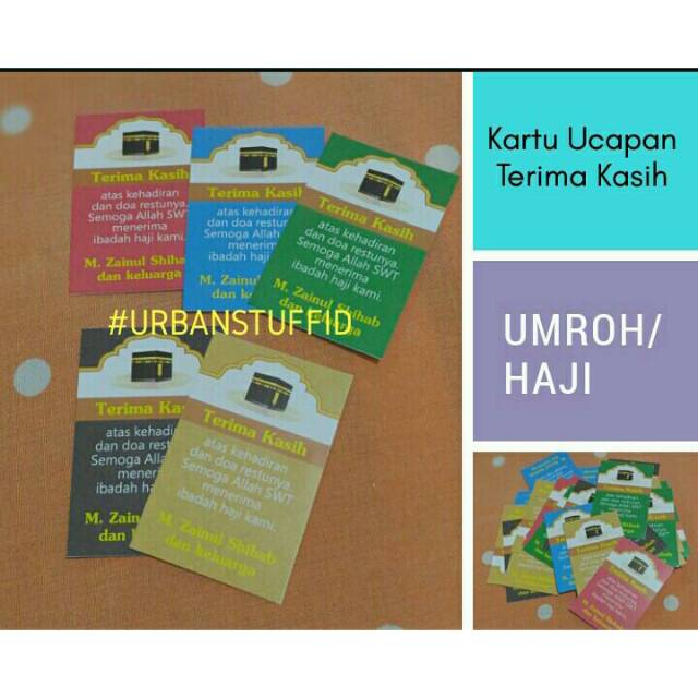 Kartu Souvenir utk Oleh-Oleh Haji/ Umroh. Ucapan Terima Kasih, Minta Doa. Syukuran. KUT. Gantungan Cantelan Pengajian. Hang Tag. Gift Tag.