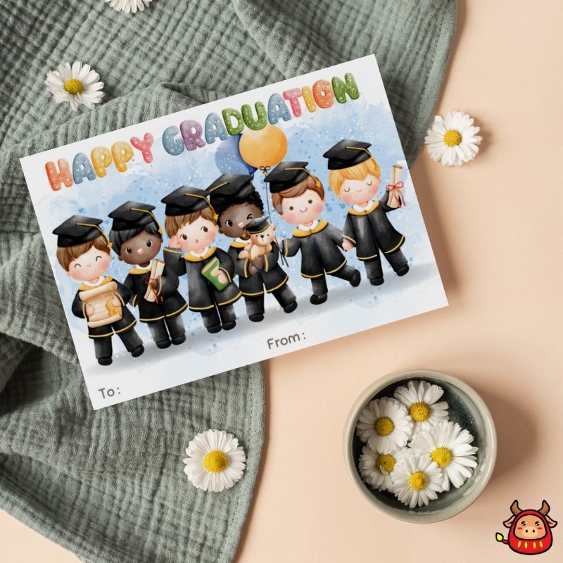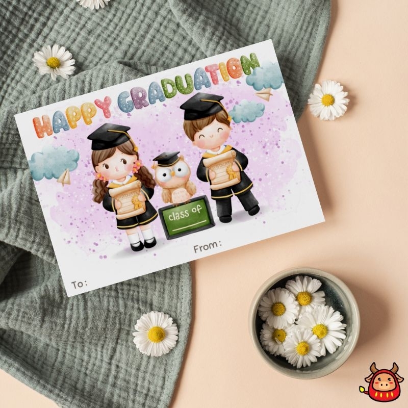 Kartu Ucapan Graduation Happy Graduation kelulusan desain lucu watercolor aesthetic terbaru