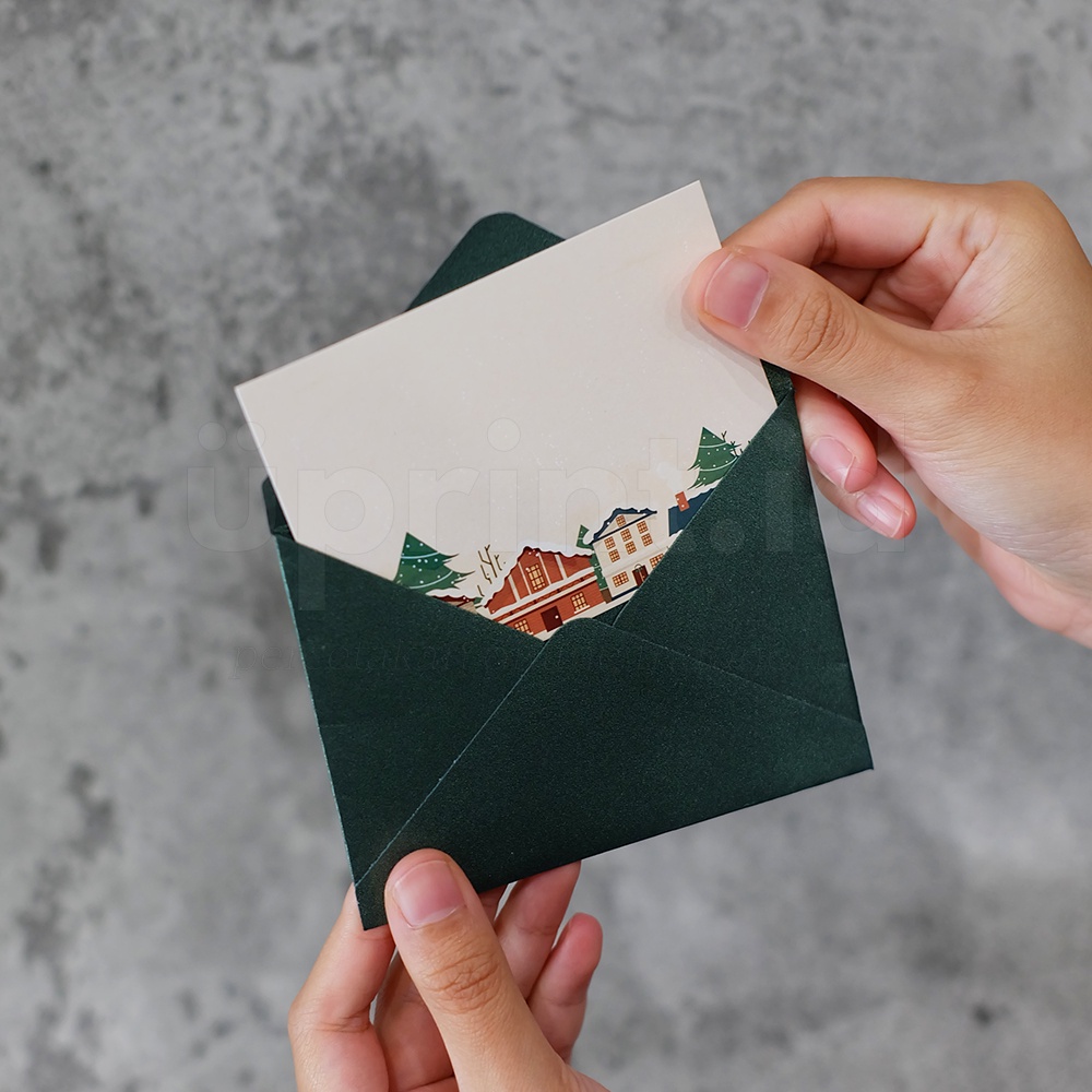 Kartu Ucapan Natal + Amplop Metallic | Ukuran A7 | Blank Card | Note Card| NCN005 + Amplop Dark Green