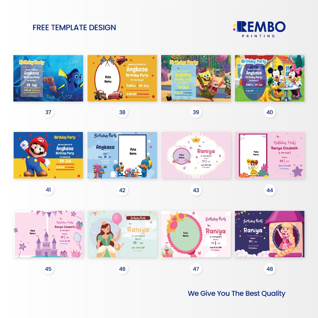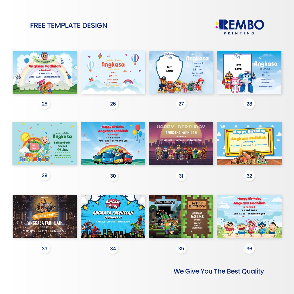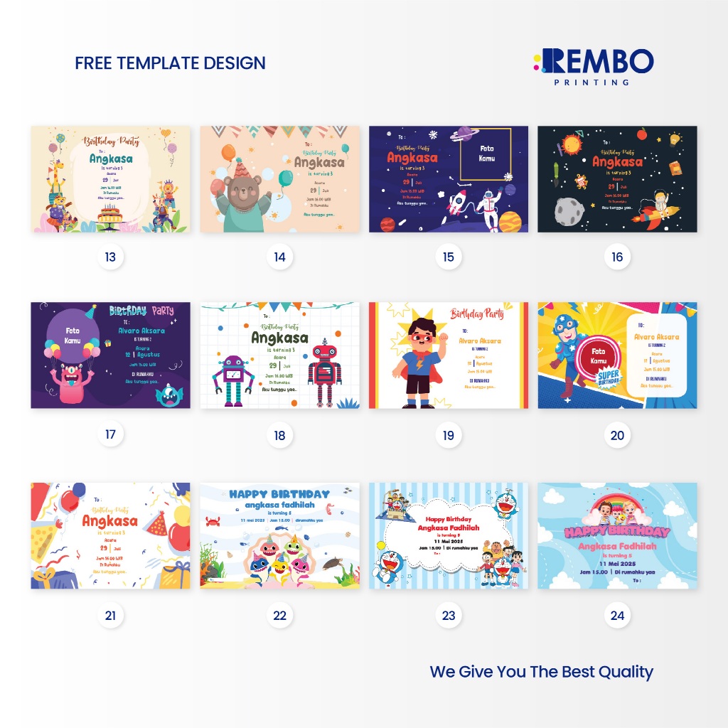 Kartu Ucapan Ulang Tahun / Kartu Ucapan Terima Kasih / Kartu Birthday / Ulang Tahun Kuromi / Hello Kitty / Roblox / Avengers / Toy Story / Free Fire / Baby Shark / Labubu - REMBO PRINTING