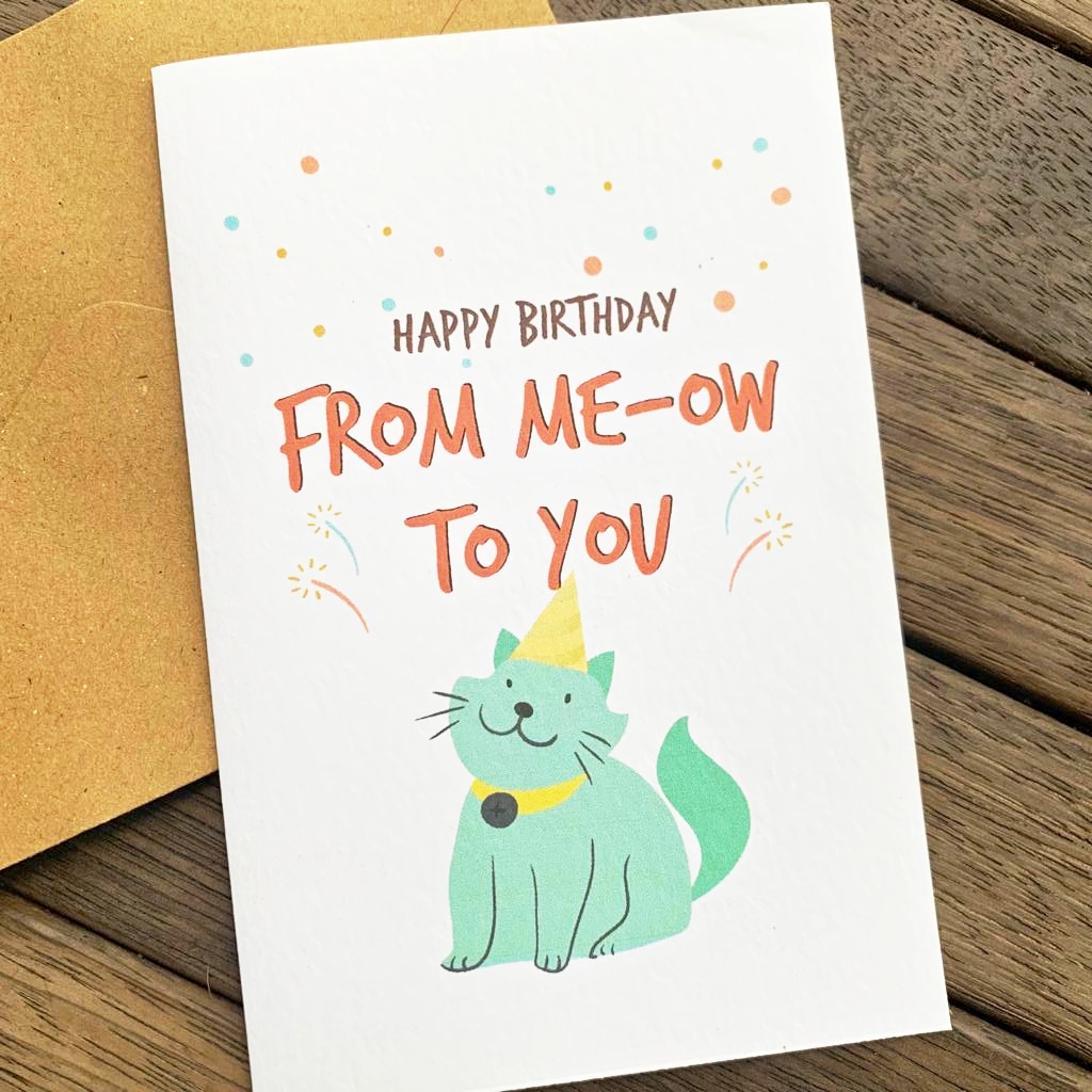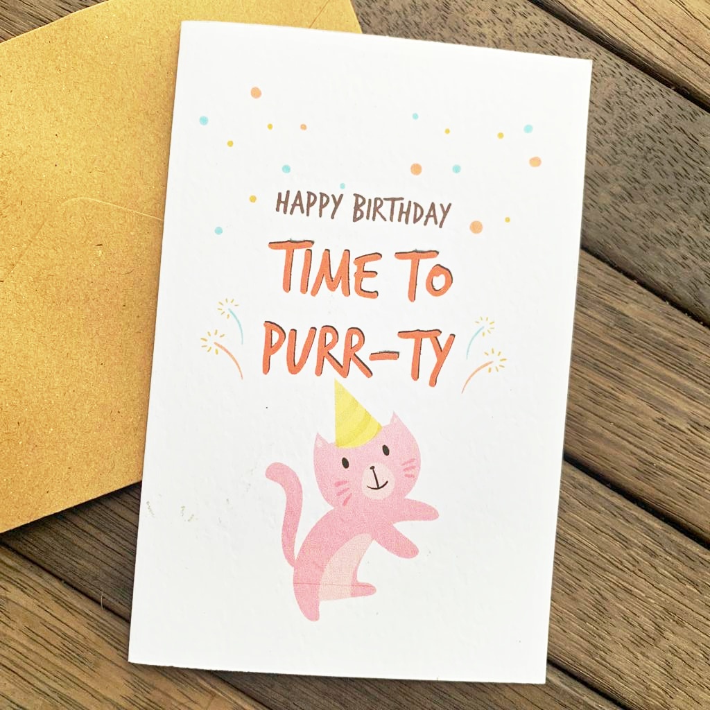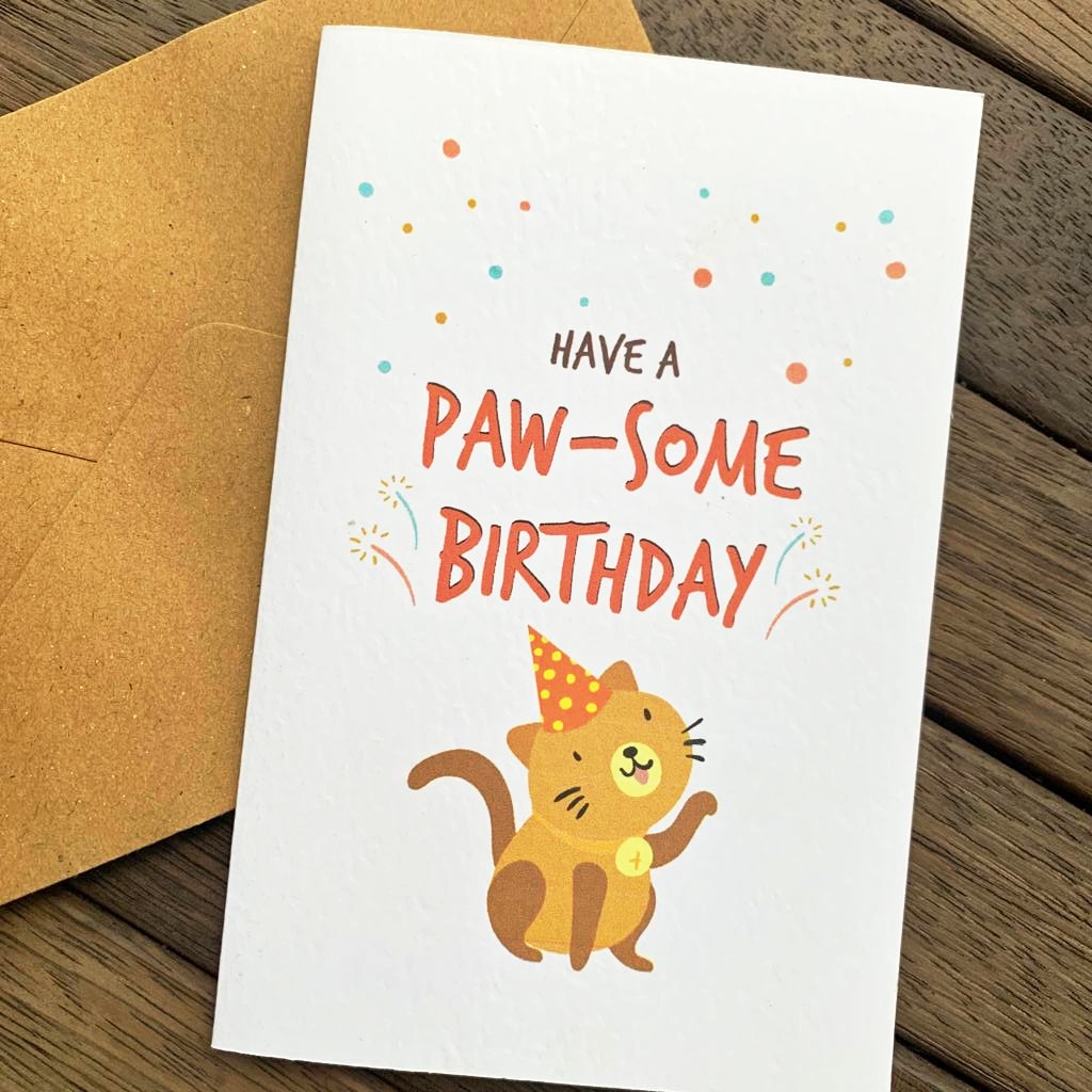 Kartu Ucapan plus Amplop Kraft Ultah Ulang Tahun Birthday Card Cat Kitten Kucing Pun