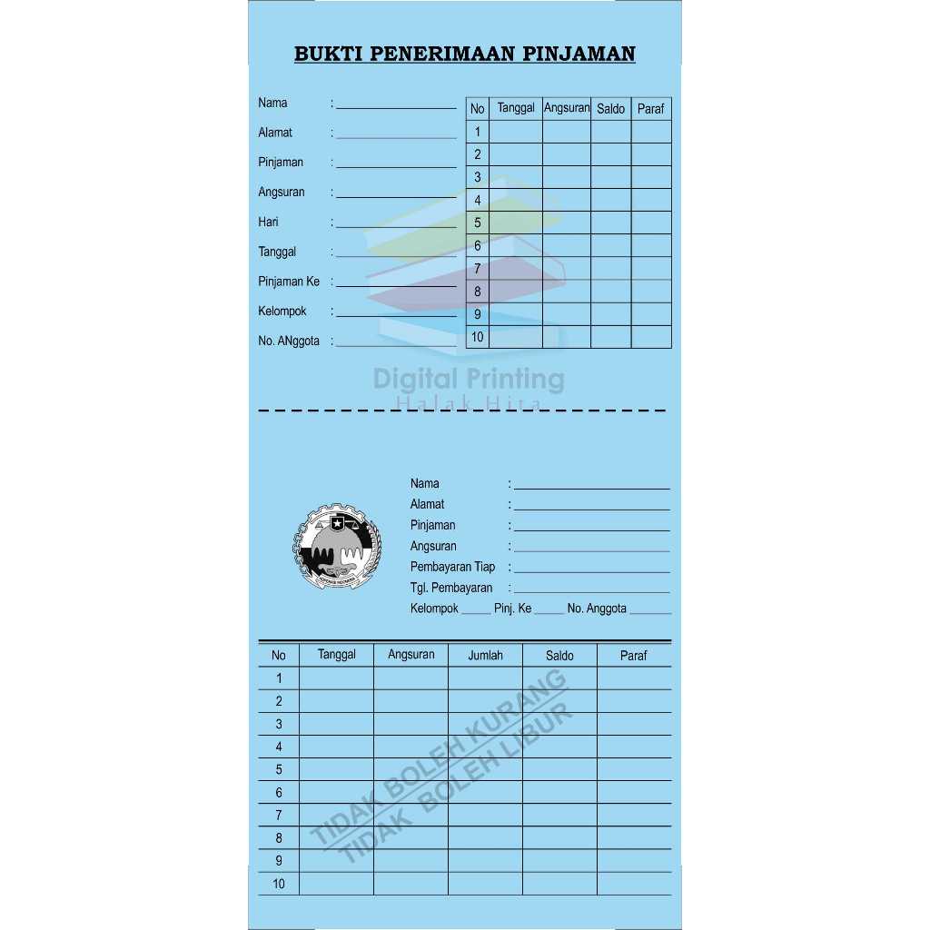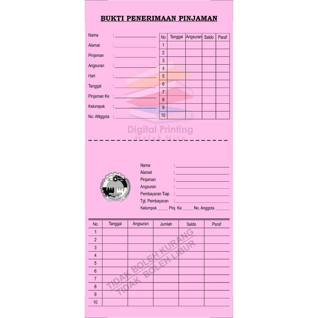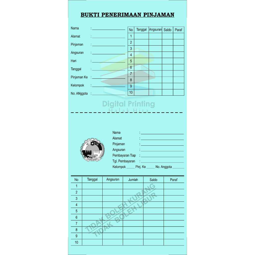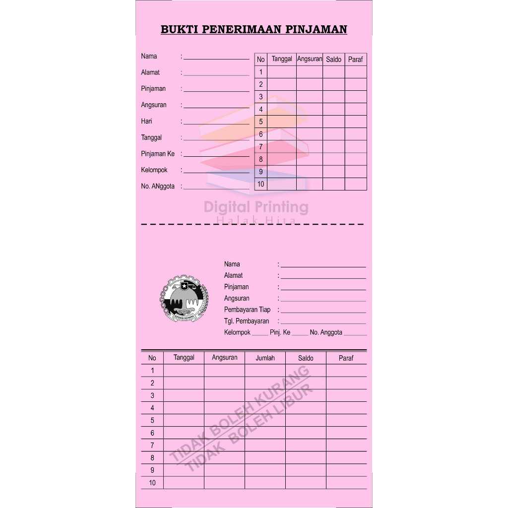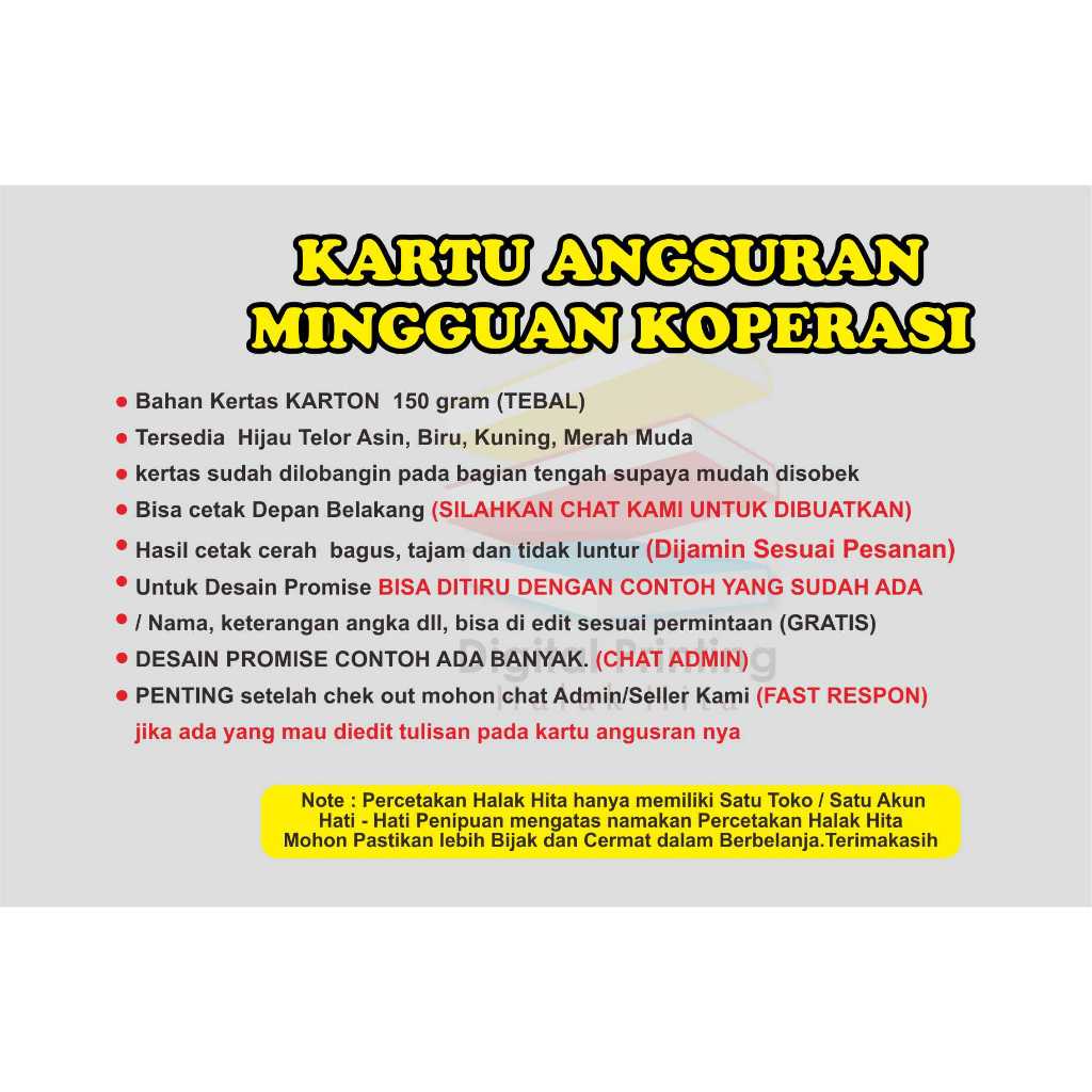 Kartu angsuran mingguan / kartu koperasi mingguan / kartu angsuran mingguan disobek / isi 50 lembar
